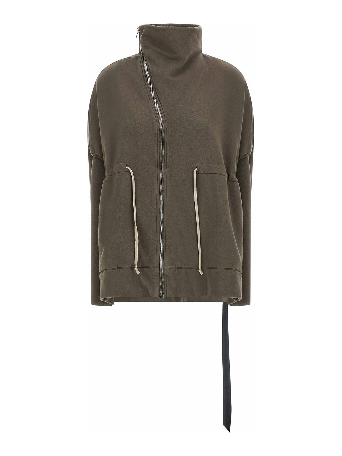 Sudadera polar de algodón para vela de montaña, cuello alto, cierre con cremallera asimétrica en la parte delantera, cordón en la cintura, bolsillos, mangas largas de algodón en forma de panal con hombros caídos y puños de corte crudo.