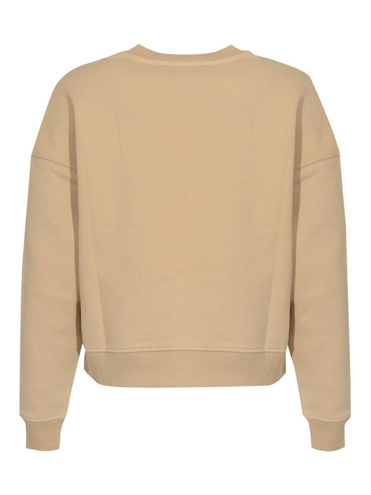 Sudadera de algodón modelo gerba con estampado de sudadera de color beige liso, mangas largas con hombros caídos, cuello redondo acanalado, sin bolsillos, ningún tono, en, tono, logotipo bordado en la parte inferior de la izquierda Ribete acanalado en el cuello, puños y dobladillo forrados, sin ajuste, cuadrada y relajada
