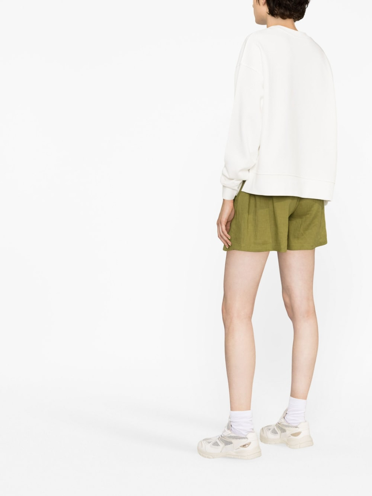 Sudadera blanca con cuello redondo con logotipo estampado, mezcla de algodón, logotipo estampado en la parte delantera, cuello redondo, hombros caídos, manga larga, aberturas laterales y dobladillo recto.