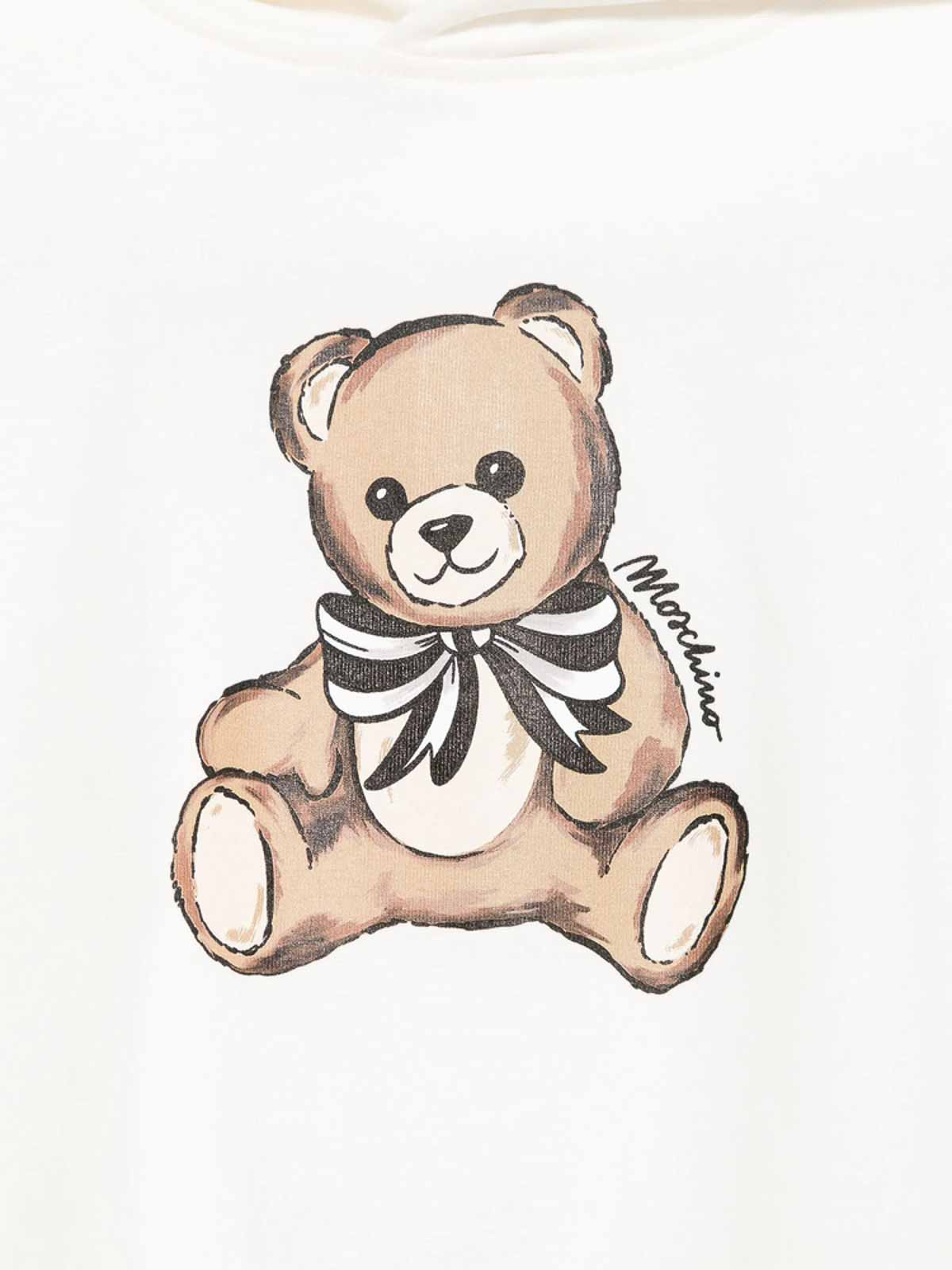 Capucha clásica blanca, mangas largas, puños elásticos, estampado de ositos de peluche