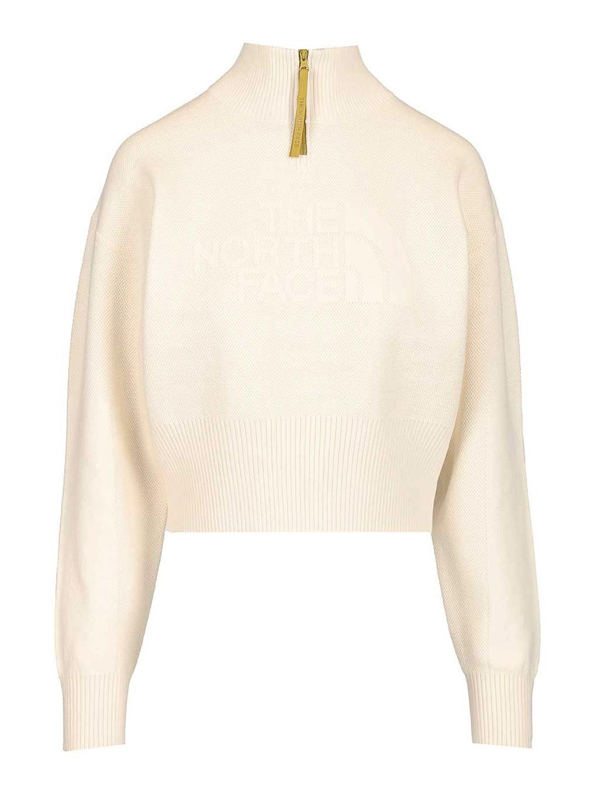 Sudadera de algodón con media cremallera de The North Face, cuello alto y nombre de la marca en la parte delantera y trasera.