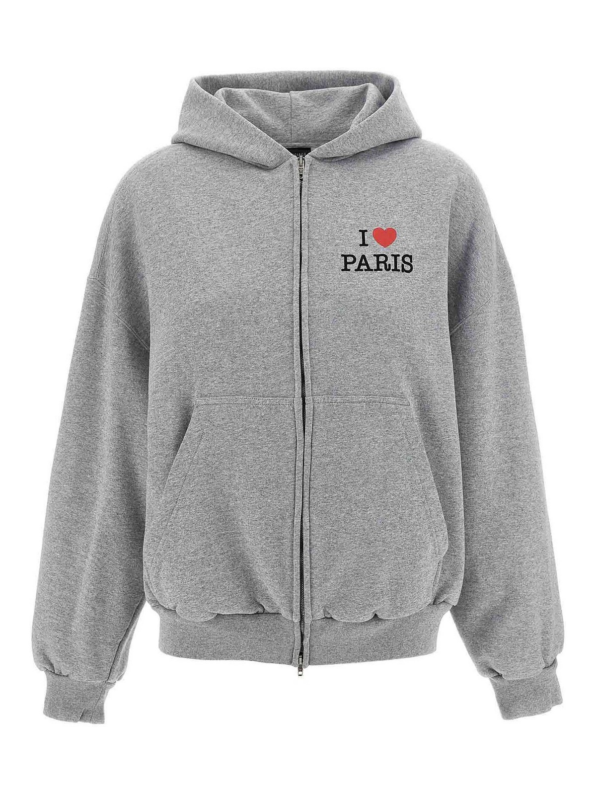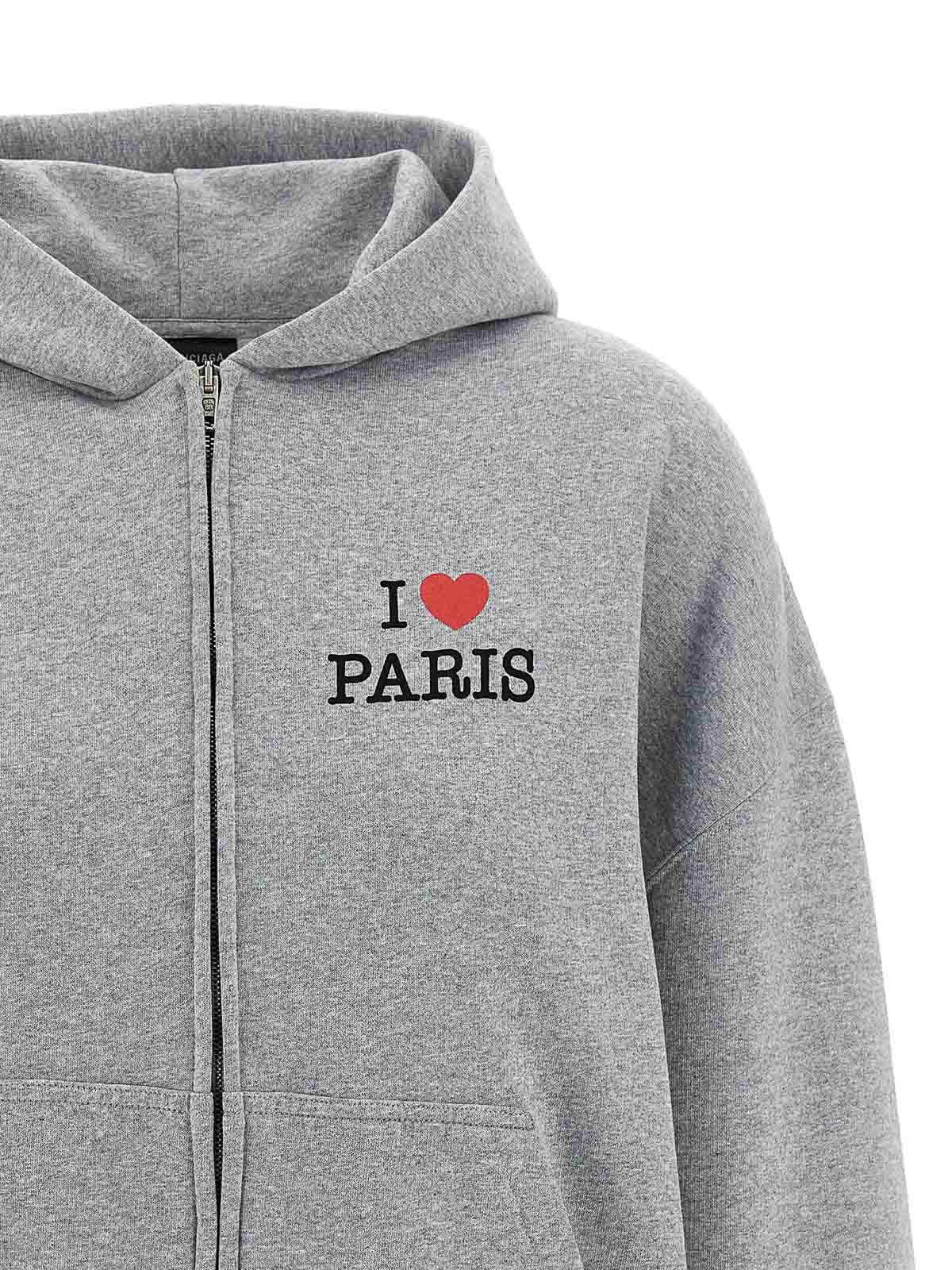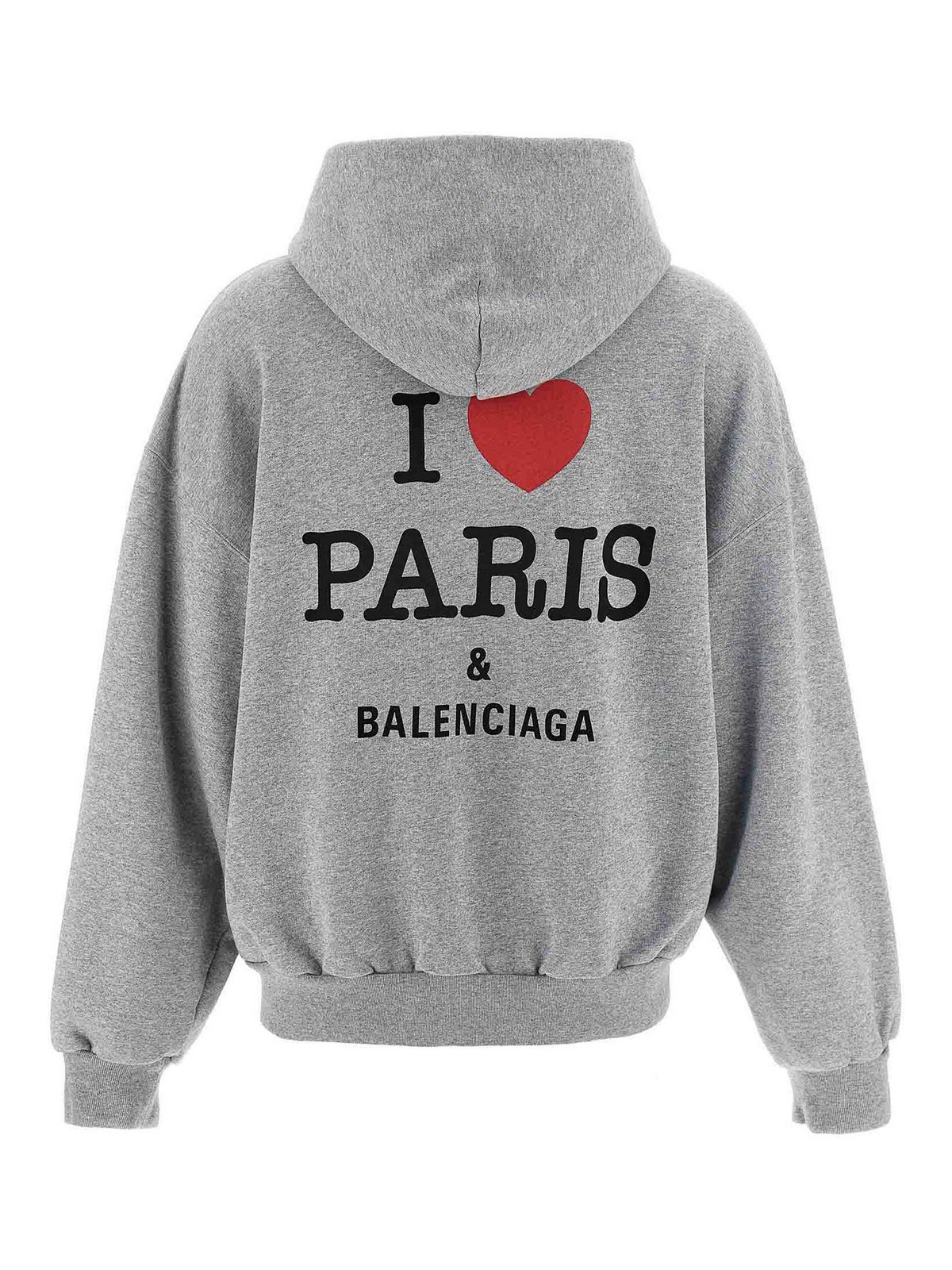 Sudadera con capucha de forro polar rizado con estampado «I love paris & balenciaga» en los bolsillos con cremallera y mangas largas con puños y hombros caídos