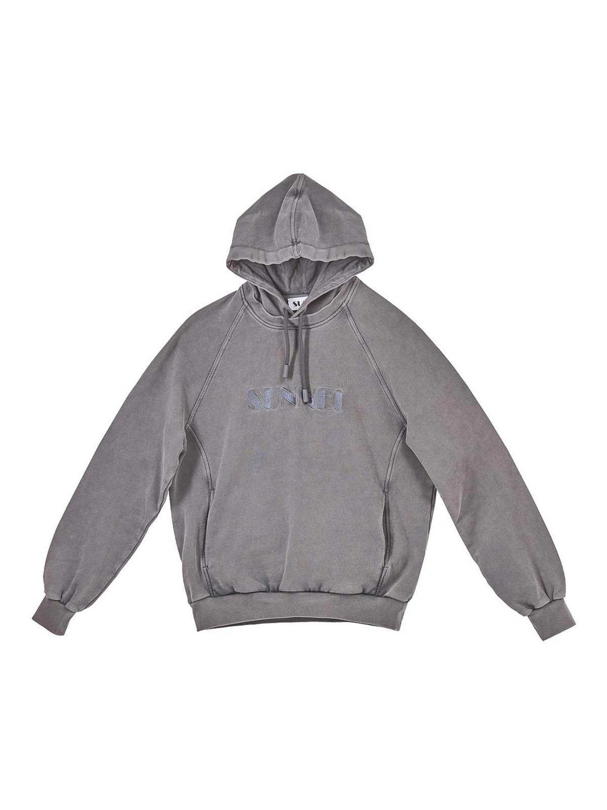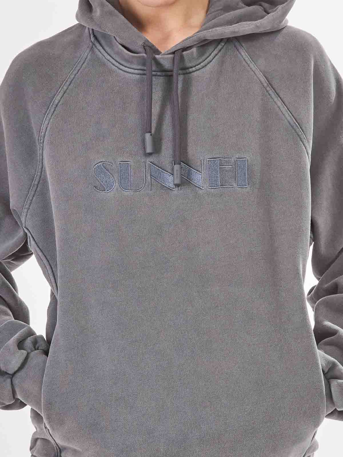sudadera con capucha doble en gris, sudadera en tejido de punto grueso de sunnei, con capucha y cordón, que se caracteriza por el bordado tono sobre tono del logotipo, mangas largas raglán y dobladillo y puños acanalados. Capucha con cordón bordado del logotipo tono sobre tono 2 bolsillos laterales ribeteados mangas raglán dobladillo y puños acanalados color: gris, 100% algodón orgánico, fabricado en Italia.