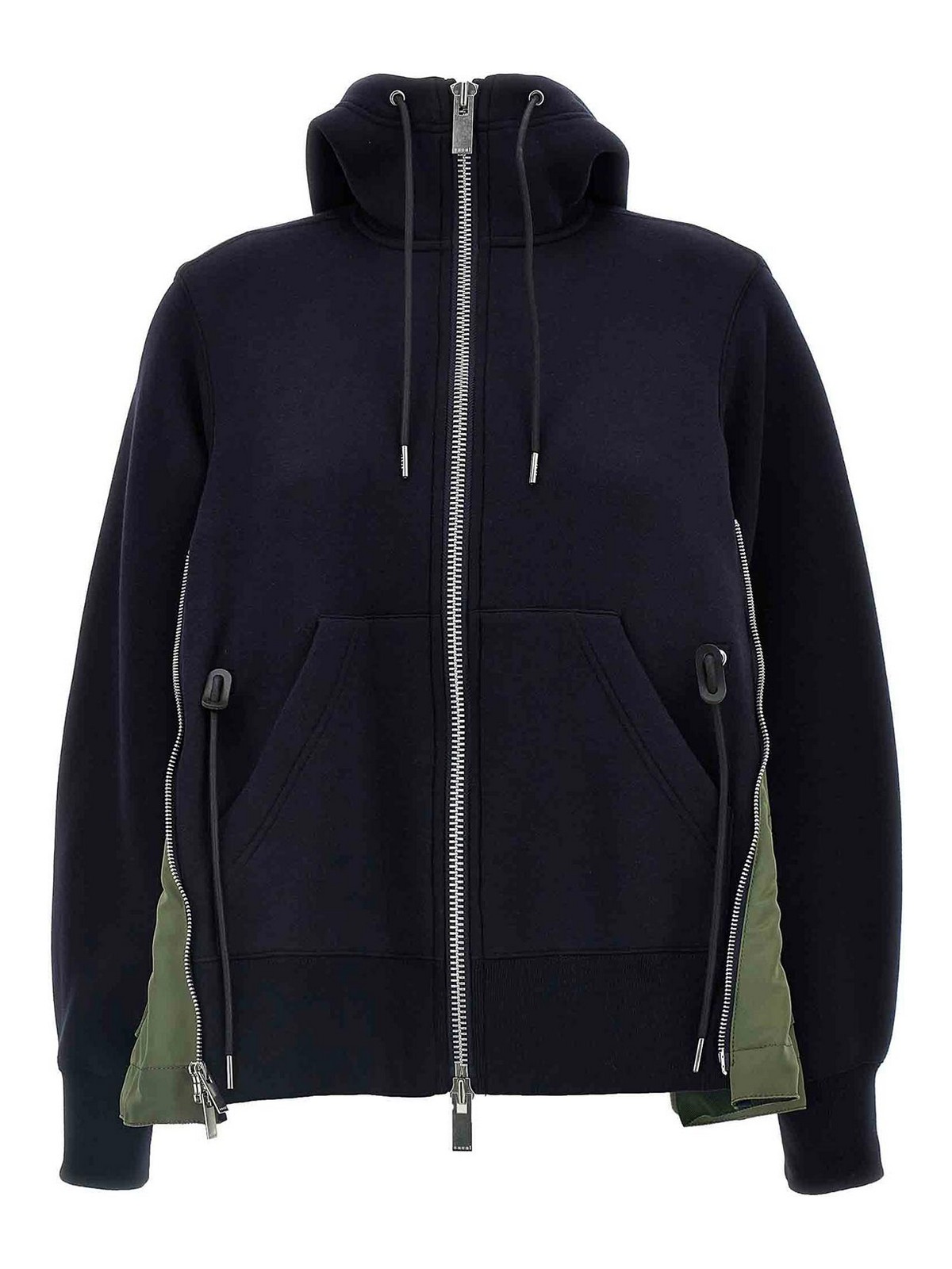 Sudadera con capucha en mezcla de algodón y esponja con inserciones de nailon, cierre con cremallera, bolsillos y mangas largas con puños.