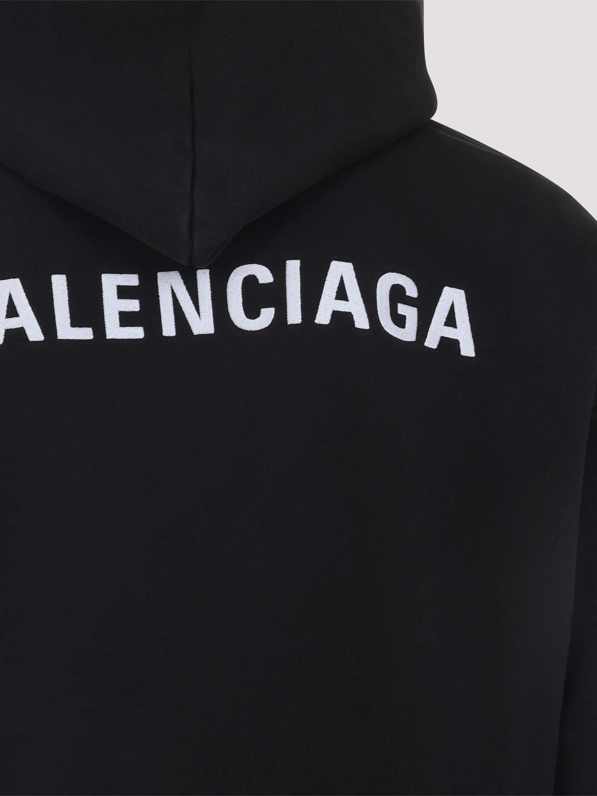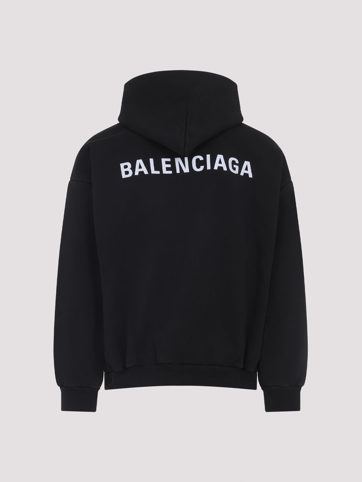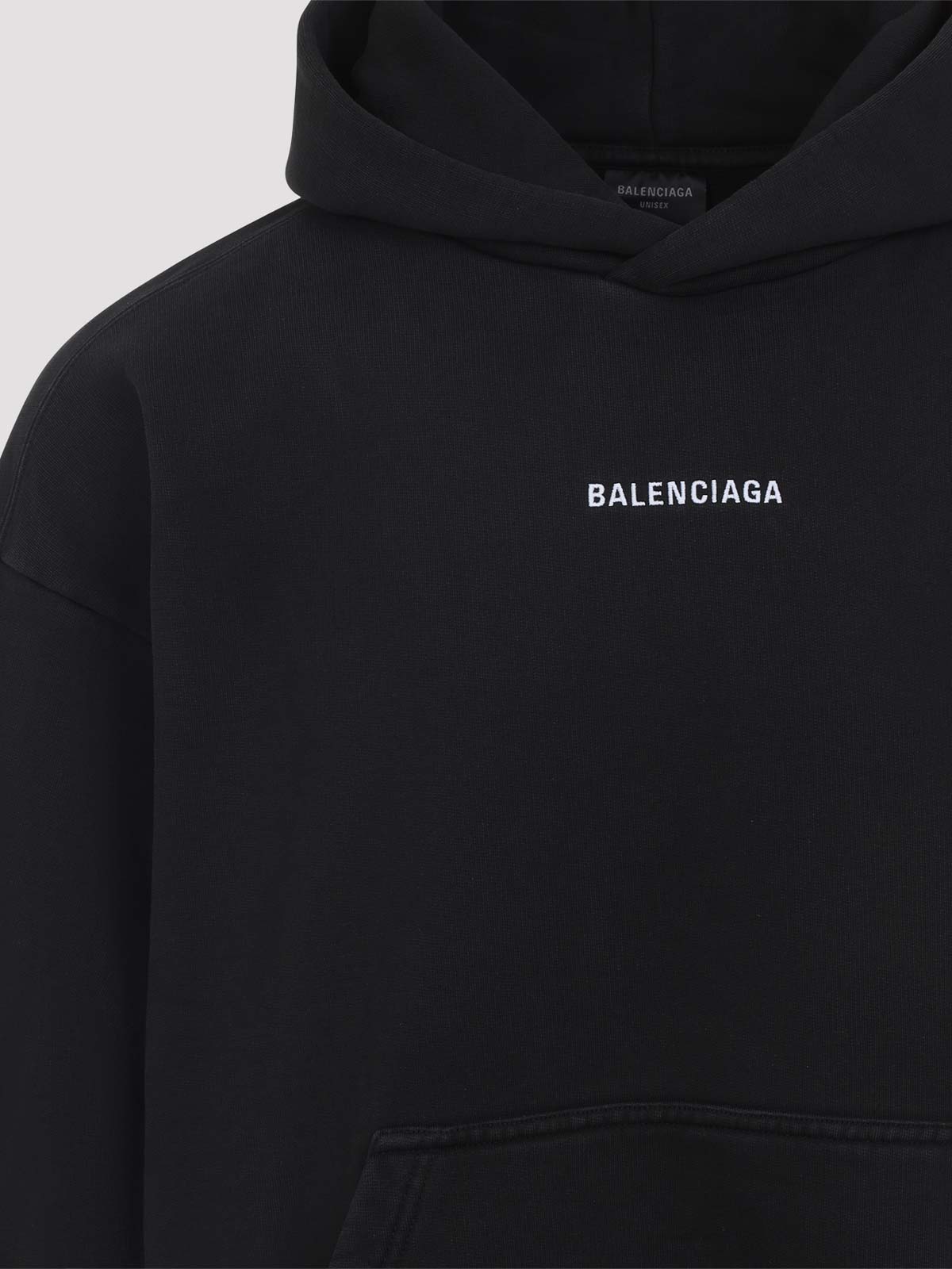 Sudadera con capucha Balenciaga de corte medio negra desteñida en negro puro, capucha tonal, letras blancas contrastantes, logotipo canguro, bolsillos en la espalda, letras blancas contrastantes, logotipo, hombros caídos, mangas largas, puños y dobladillo acanalados, dobladillo recto