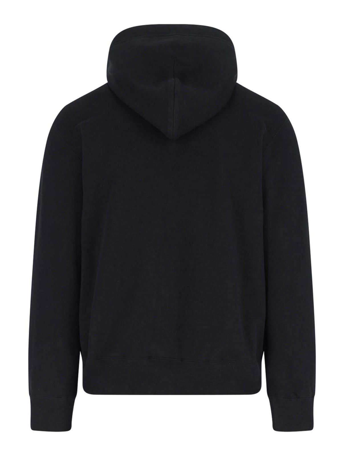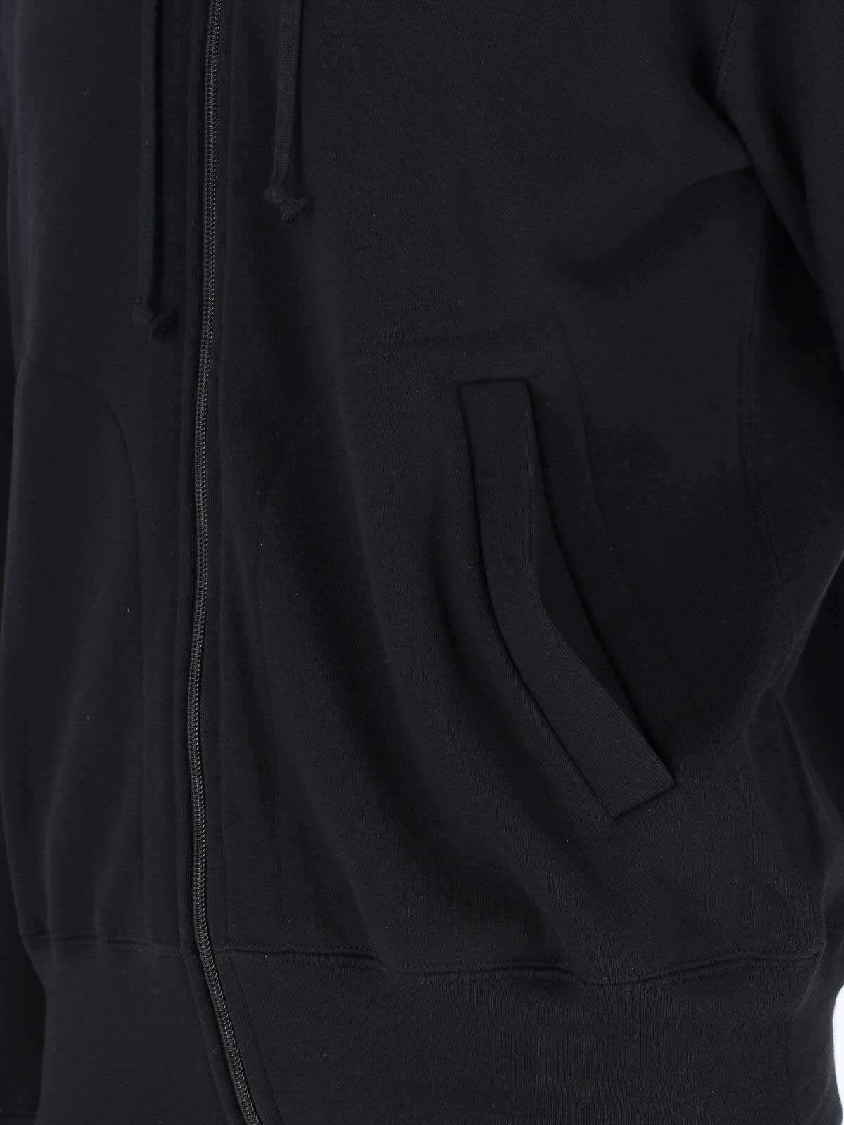 Sudadera Zip Logo Como des Garcons Play, de algodón negro, capucha coulisse, bordado de fondo, dos bolsillos delanteros, acabados acanalados, dobladillo recto.