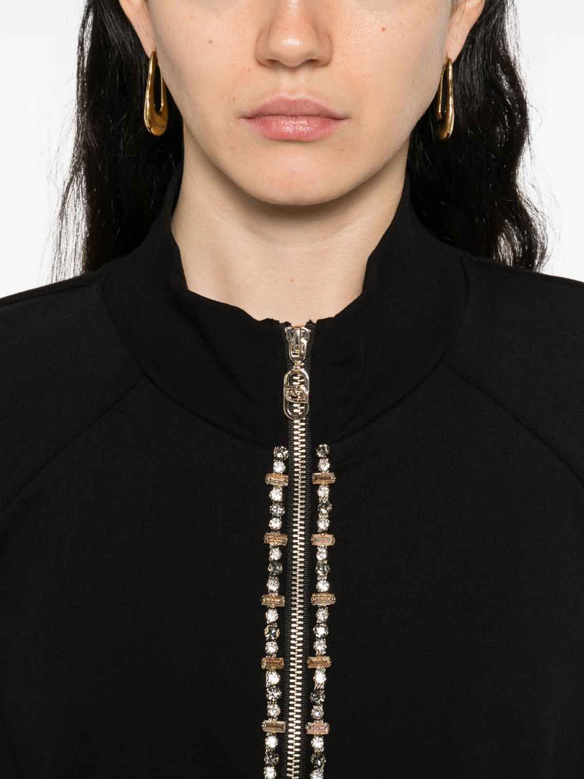 Mangas largas con cremallera y puños ajustados con adornos de joyas negras