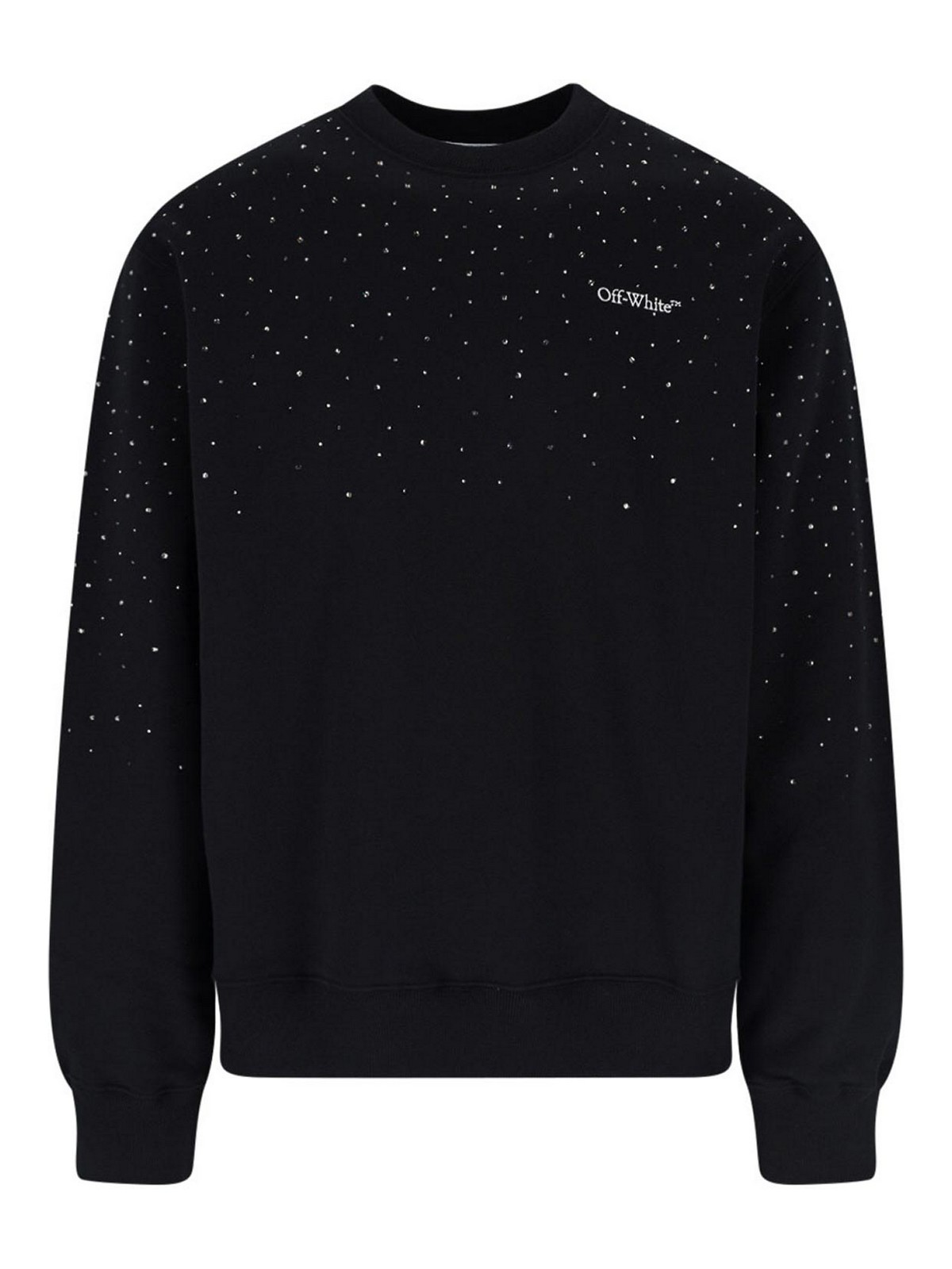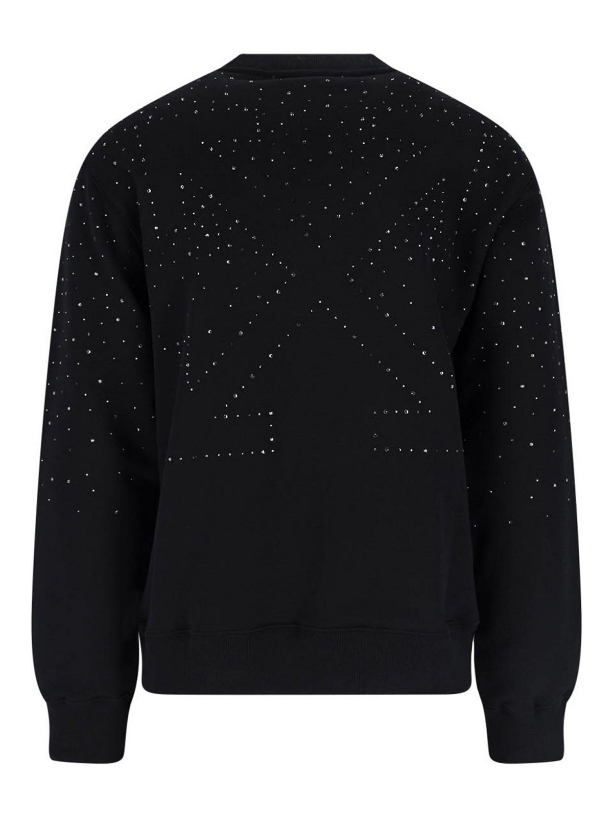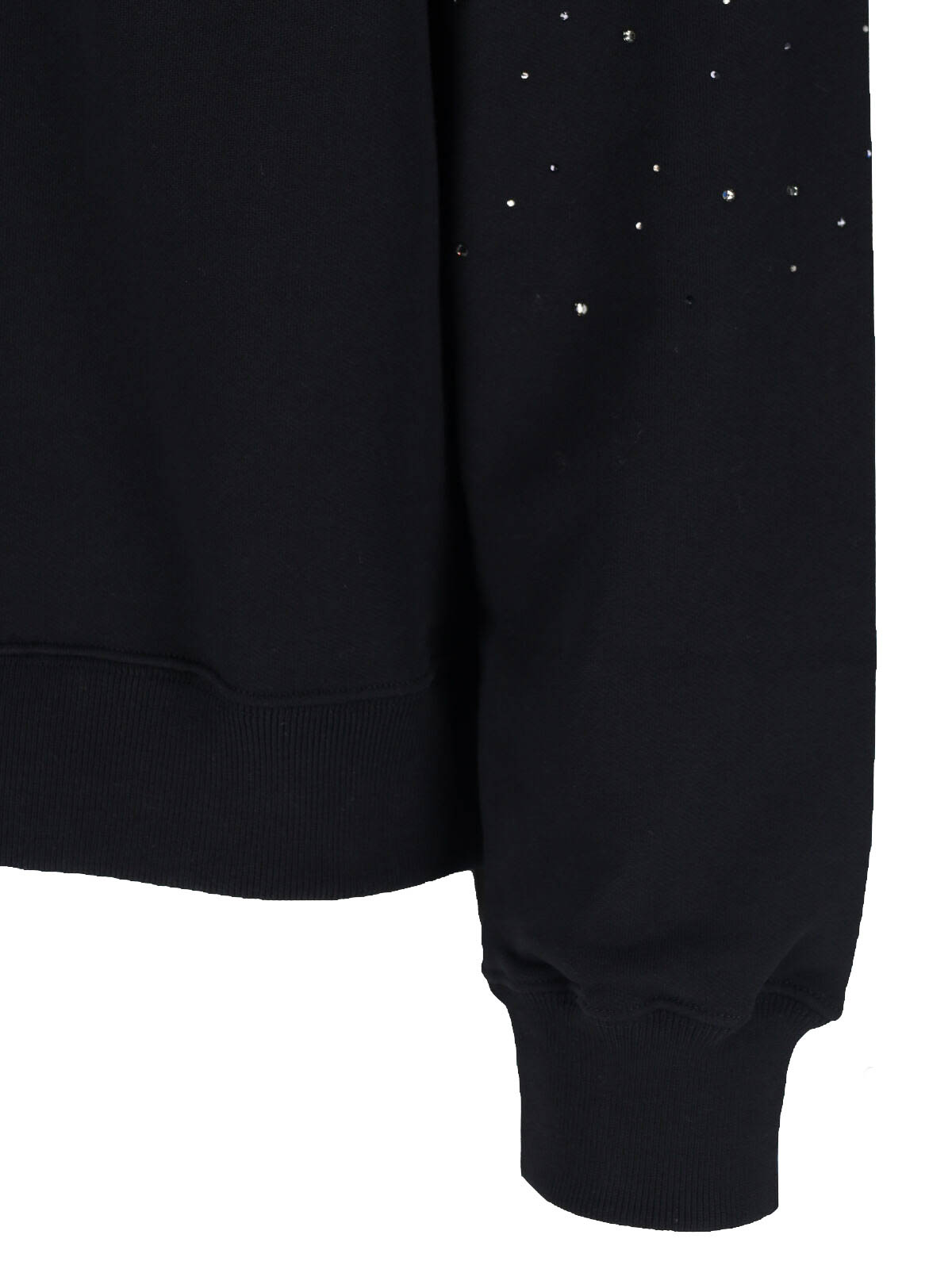 Sudadera con logo de strass blanquecino en algodón negro, cuello redondo, manga larga, pedrería aplicada, logo en contraste en la parte delantera, logo con flecha en la parte trasera, dobladillo recto.