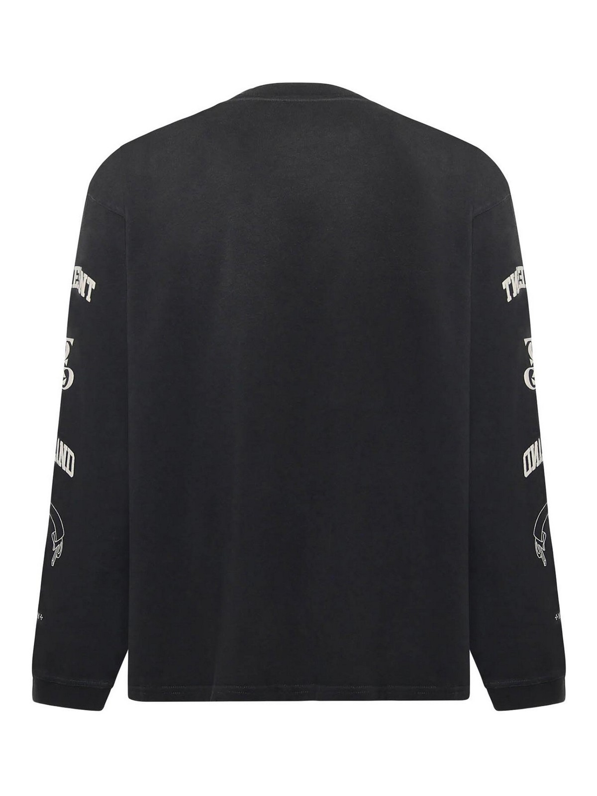 Cuello acanalado, cuello redondo, logotipo grande de goma en las mangas y mangas largas con puños, parche con el logotipo en la parte inferior, negro