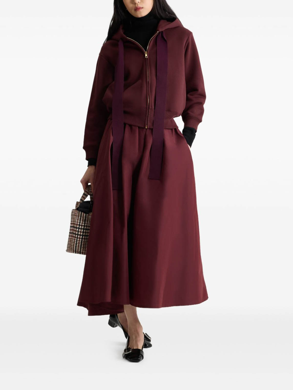 Manga larga con capucha y cordón de forro polar burdeos con logotipo bordado