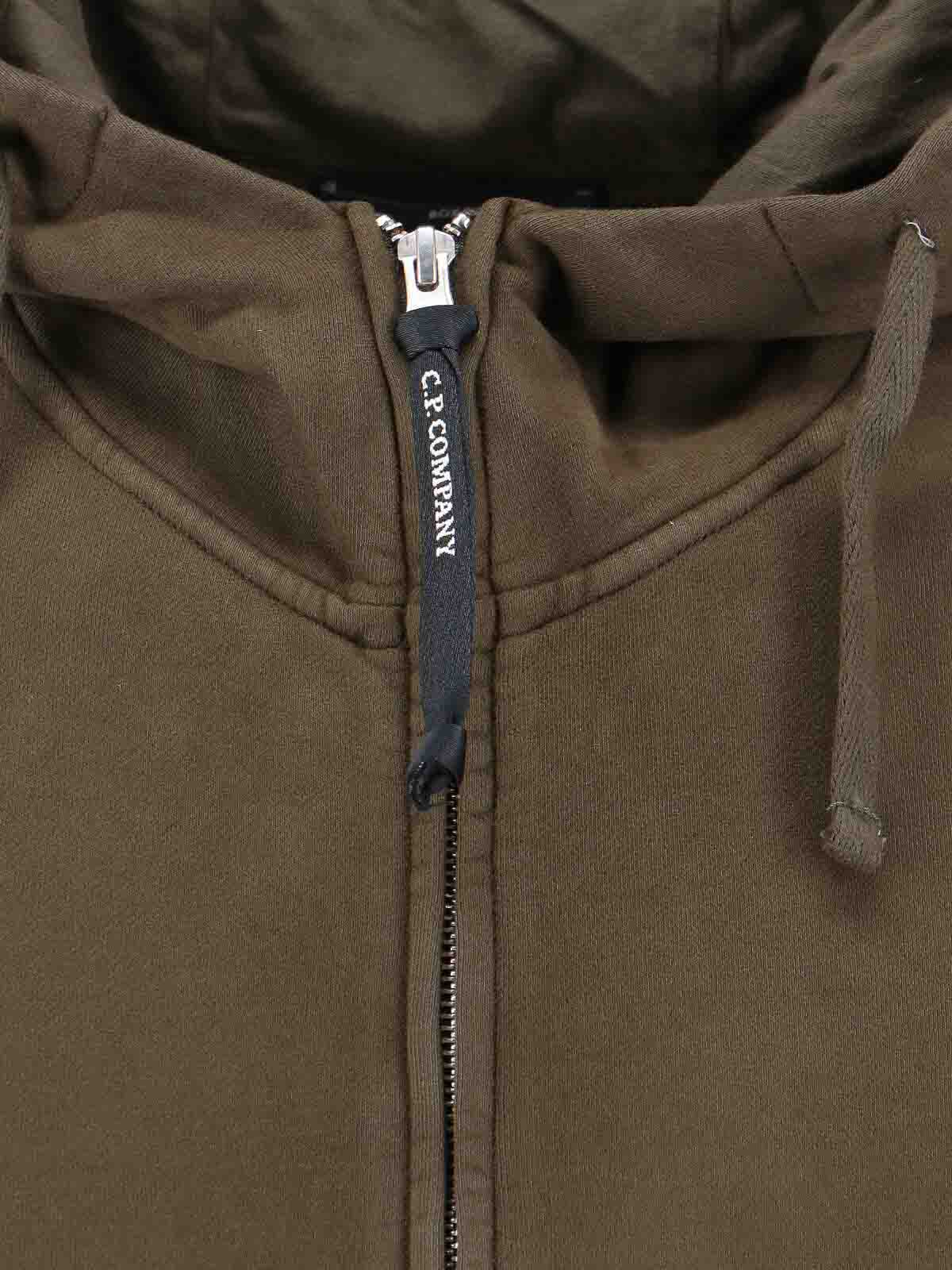 Logo C.P. Company, en algodón verde, capucha coulisse, capucha de venta al por menor, cierre con cremallera, solapa con bolsillo en la manga, detalle del logotipo de herrajes en la manga, dos bolsillos frontales, puños elásticos y dobladillo recto.