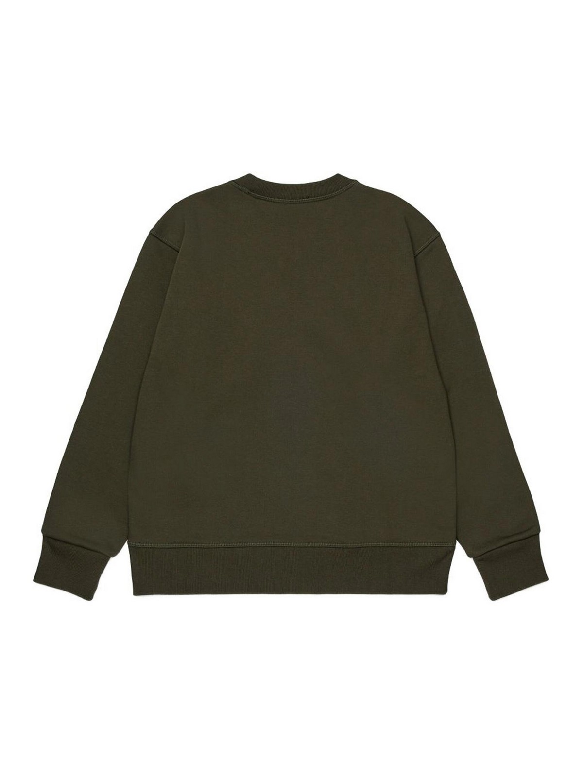 La sudadera de algodón presenta un logotipo verde oliva estampado en el cuello redondo, mangas largas y dobladillo recto