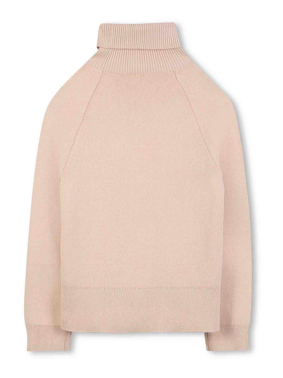 Diseño de logotipo bordado en rosa claro, cuello acanalado, mangas raglán, dobladillo asimétrico orgánico