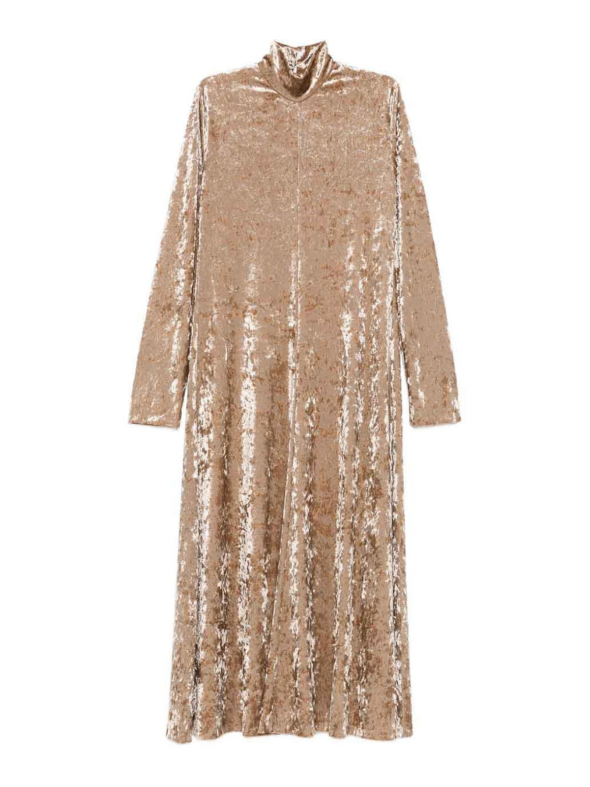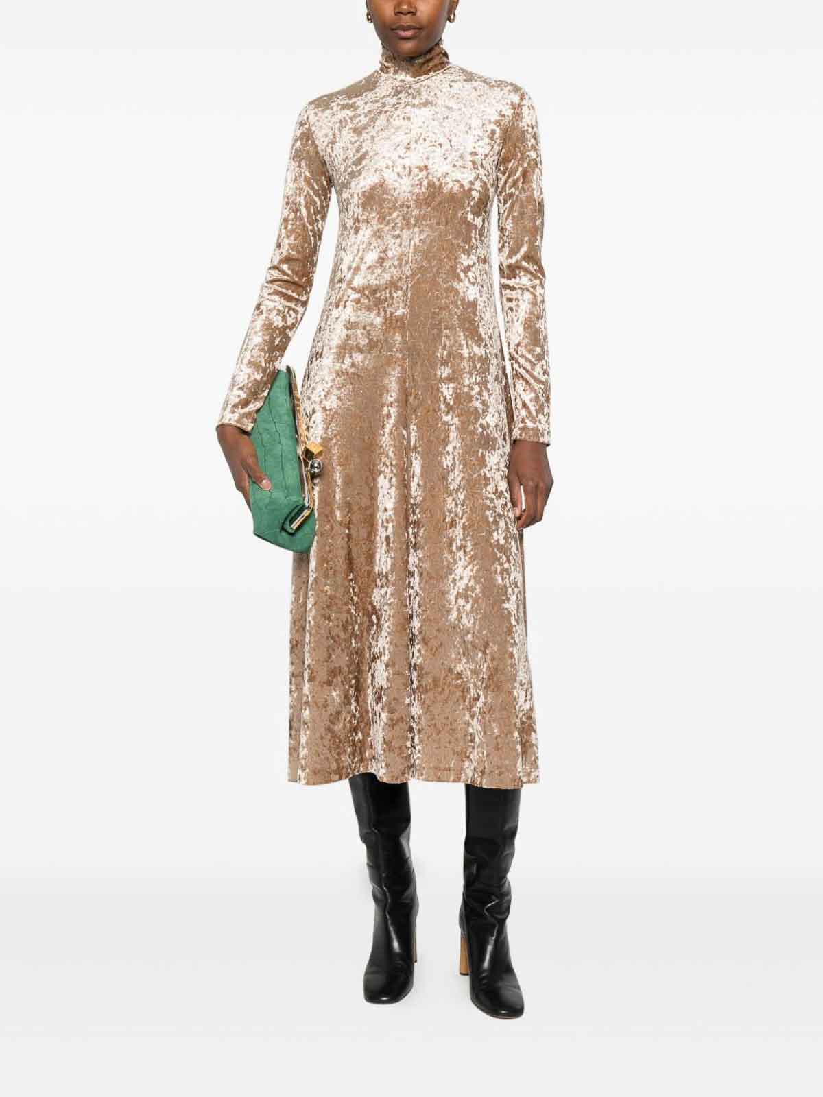 Mangas largas con textura de terciopelo beige, cuello alto, longitud midi