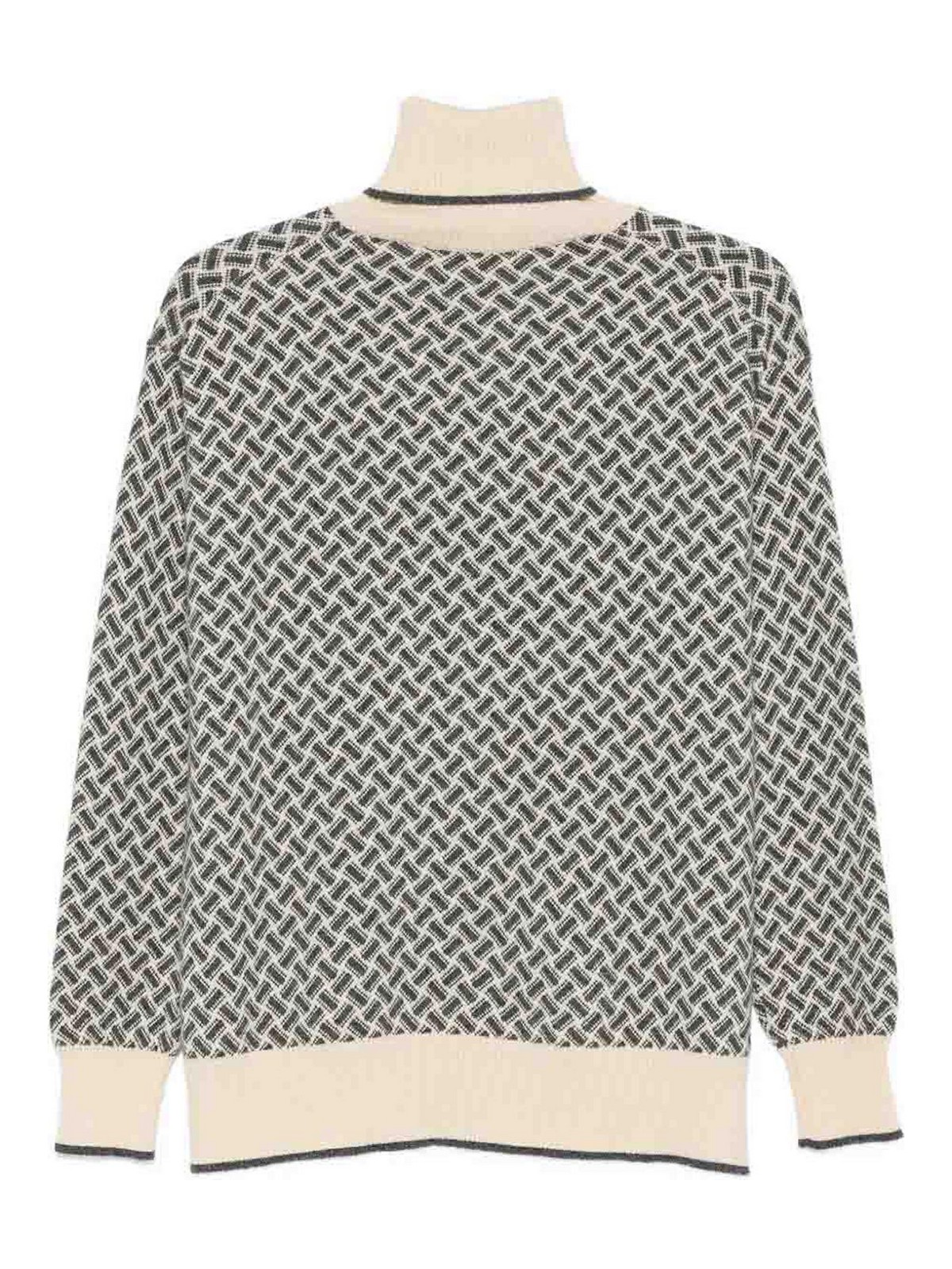 cuello alto con estampado geométrico blanco mangas largas puños acanalados dobladillo acanalado