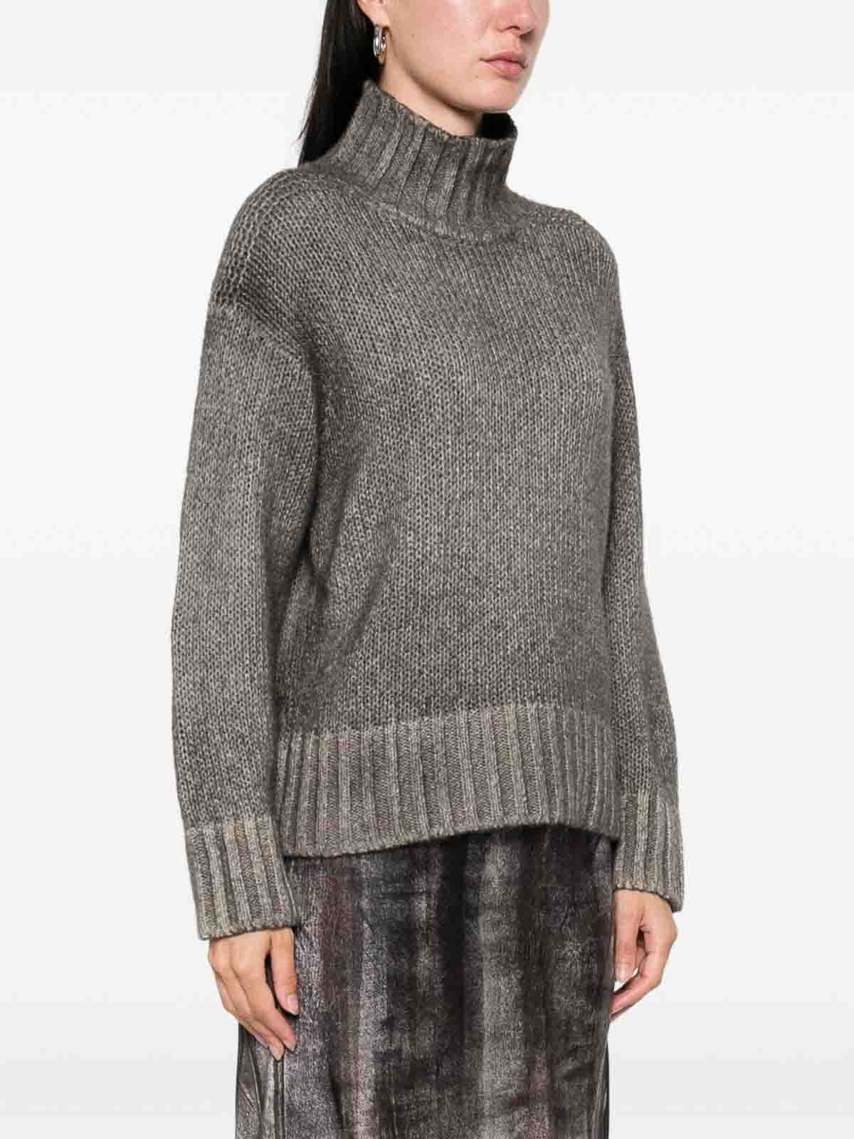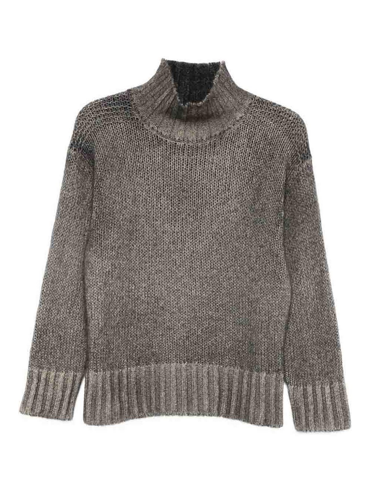 Cuello alto gris de punto acanalado, mangas largas, dobladillo recto