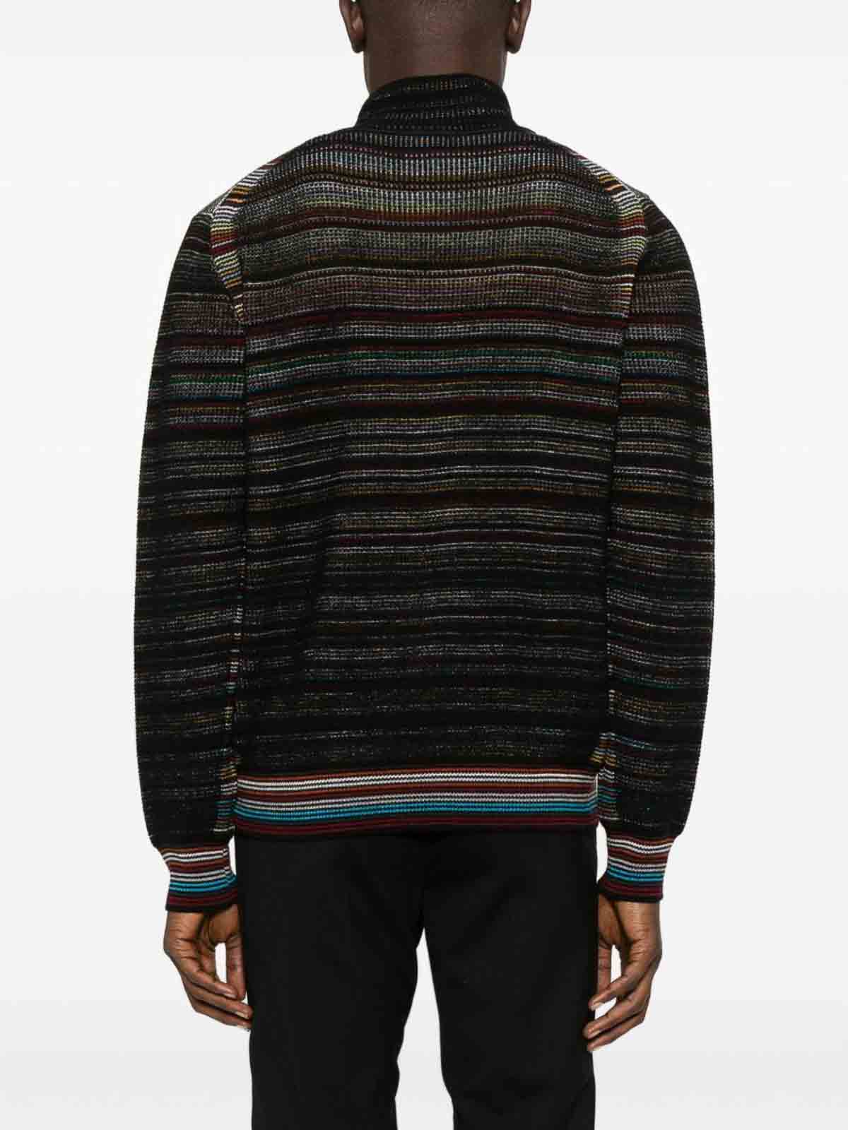 Rayas multicolores negras, cuello alto, mangas largas, puños acanalados, dobladillo acanalado