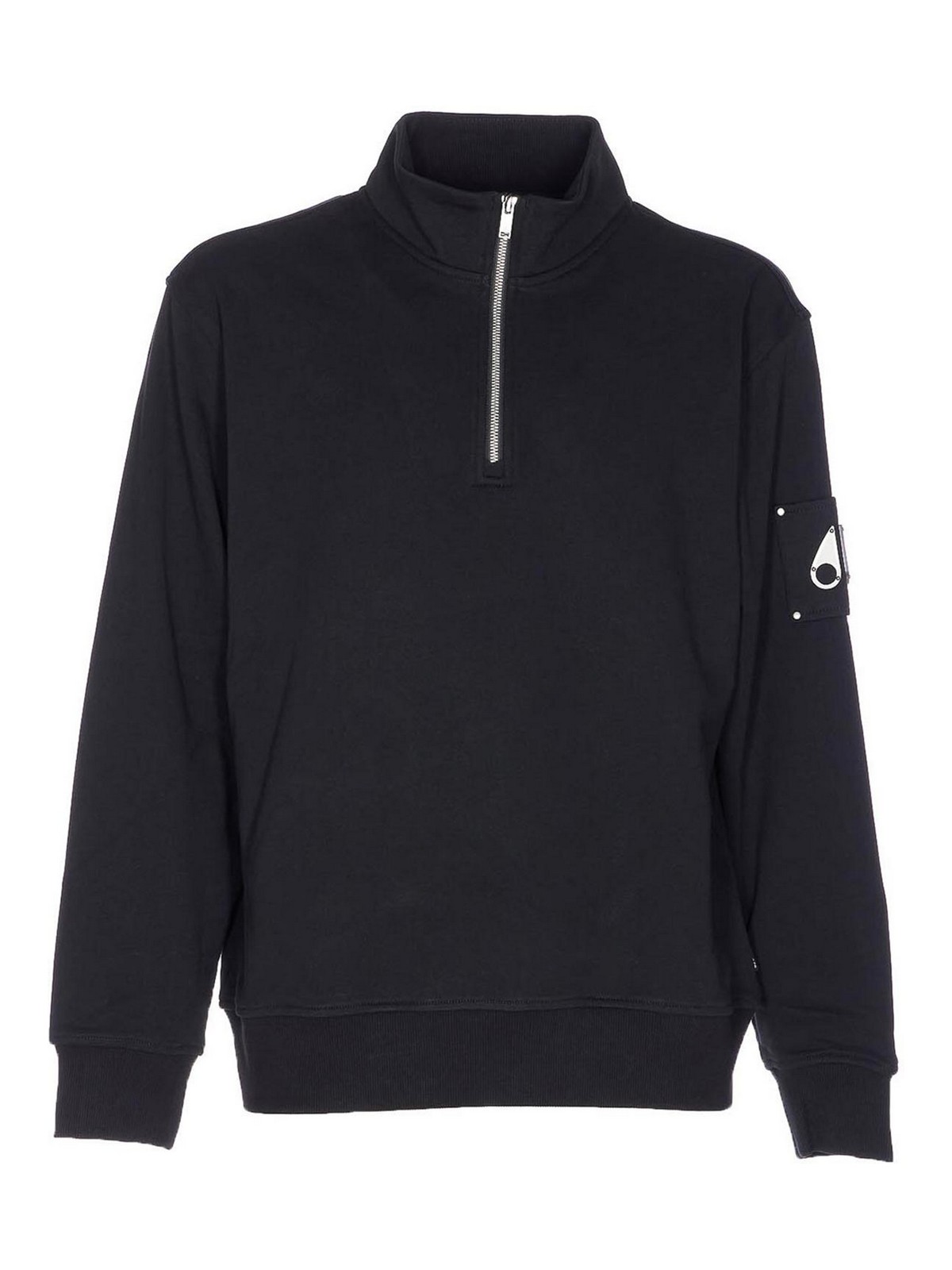 Hartsfield negro con nudillos de alce con cierre de media cremallera, cuello alto, manga larga, logotipo de parche en el lateral