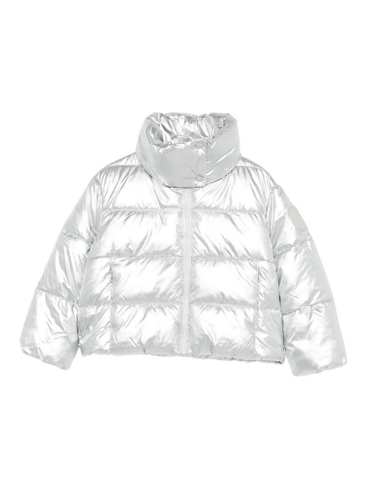 Chaqueta acolchada de cuello alto en tono plateado de Save the