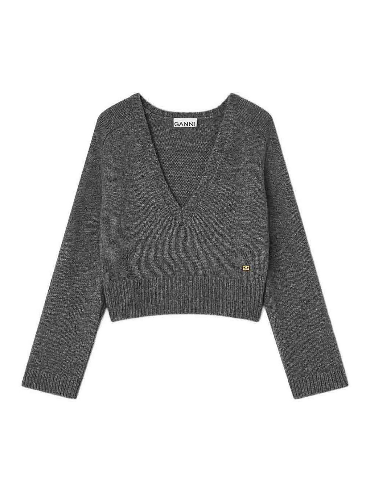 GANNI: Suéteres con cuello pico - Suéter Con Cuello De Pico - Gris