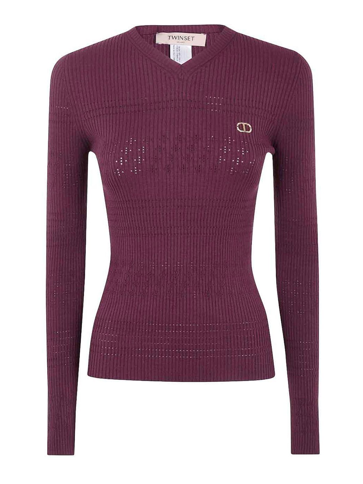 TWINSET: Escotes barcos - Suéter Con Escote Barco - Púrpura