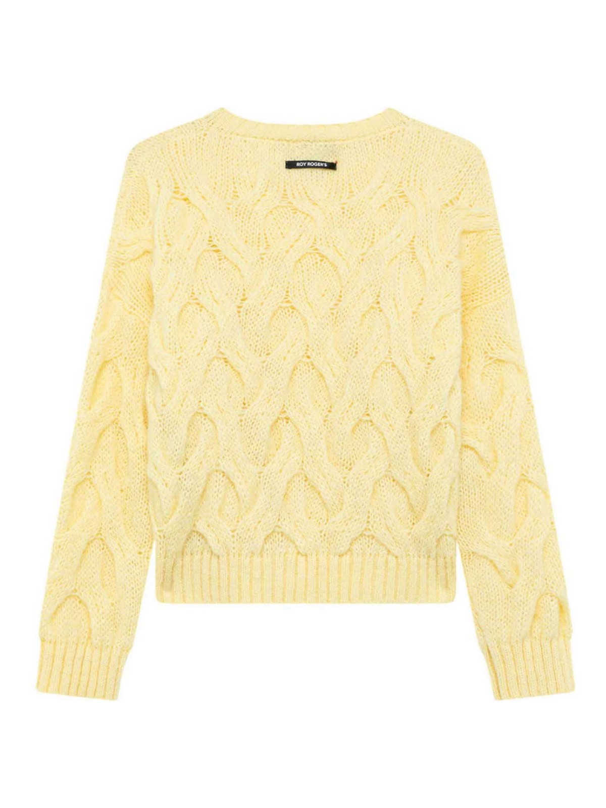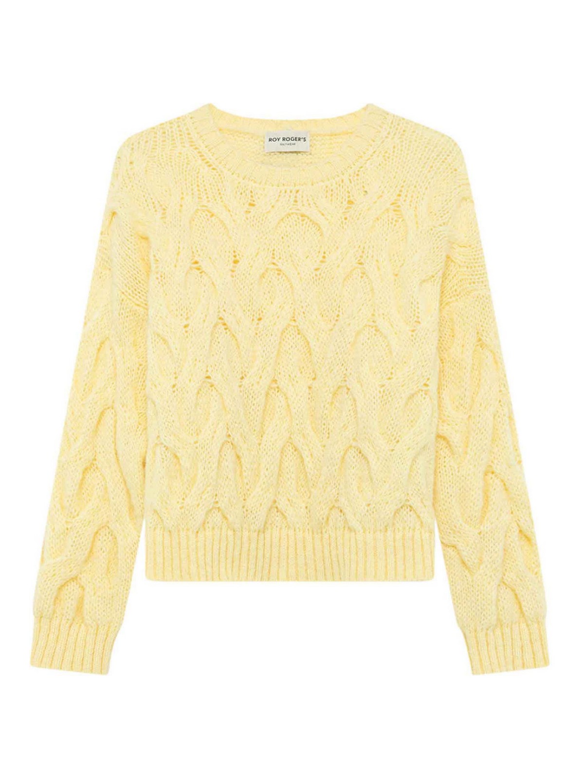 Jersey Roy Rogers multicable para mujer en mezcla de alpaca con cuello redondo de roy rogers hecho de fino hilo de mezcla de alpaca con fabricación multicable. El diseño presenta mangas largas y un corte cuadrado regular que proporciona comodidad y un estilo contemporáneo. Los bordes acanalados en el cuello, los puños y la parte inferior garantizan un ajuste perfecto y un aspecto pulcro. El detalle de la etiqueta roy rogers aplicado en la parte posterior completa la prenda con un toque icónico y discreto. amante, ideal para la temporada de invierno y para atuendos casuales refinados.