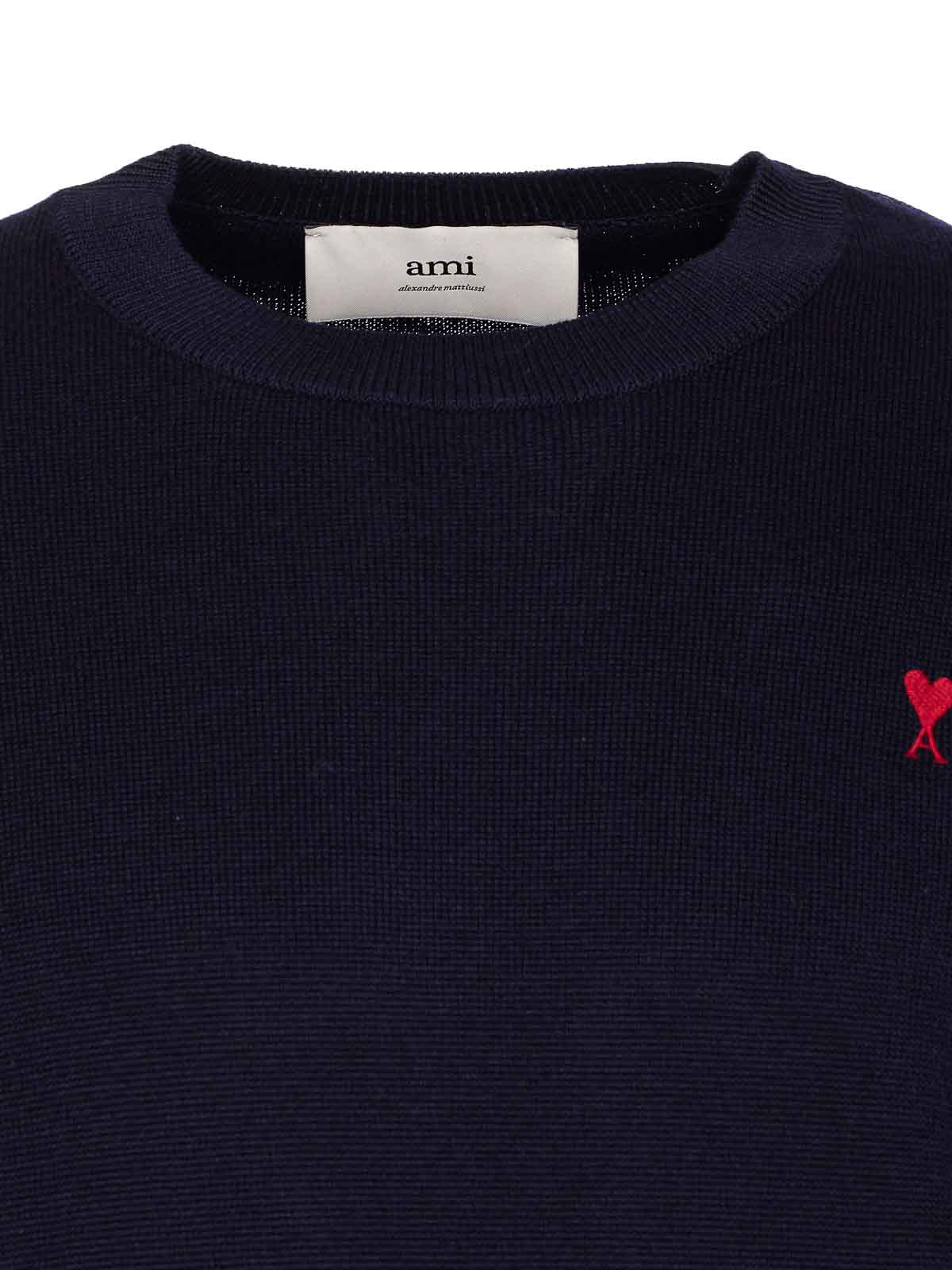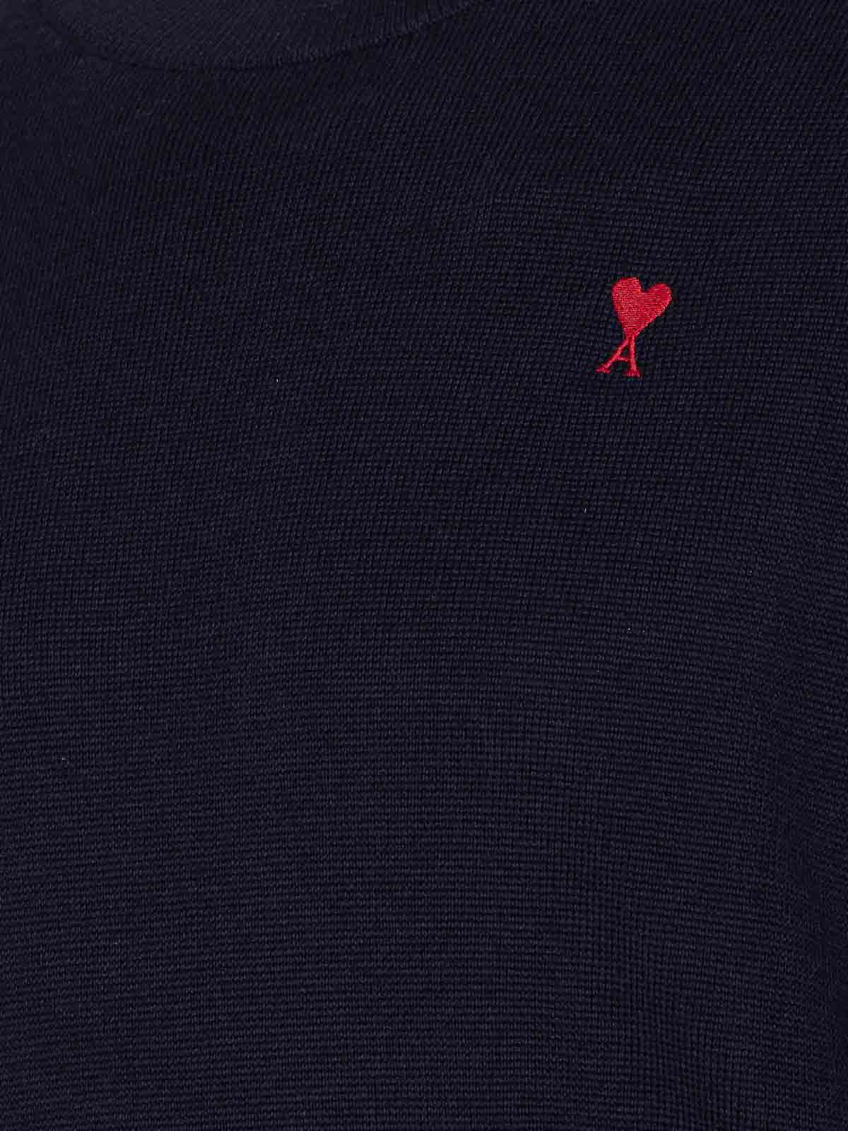 Jersey azul Ami alexandre mattiussi con cuello redondo con el logotipo de ami de coeur bordado en el