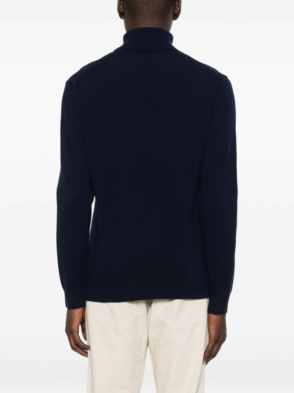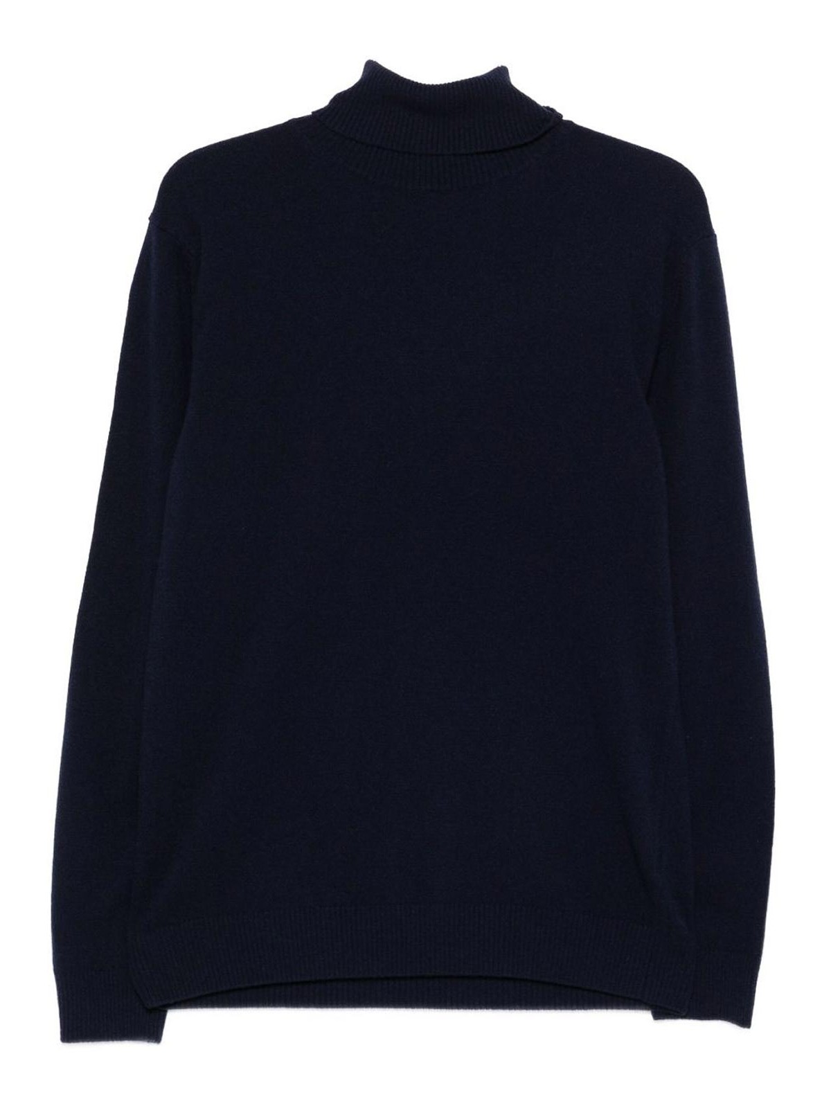 Cuello alto azul marino, mangas largas, puños y dobladillo acanalados, punto mixto