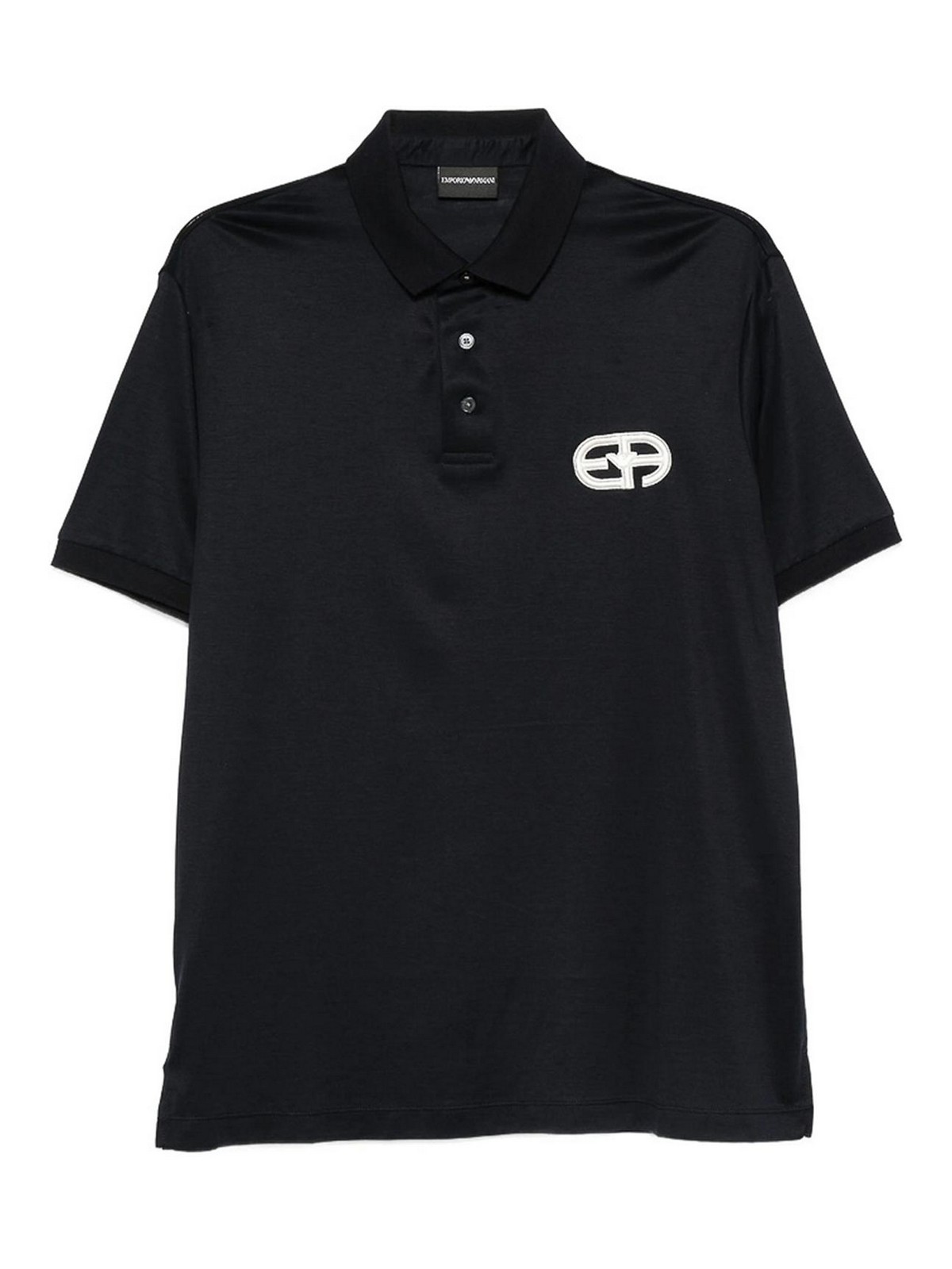 Logotipo bordado de manga corta azul marino con cierre de botones