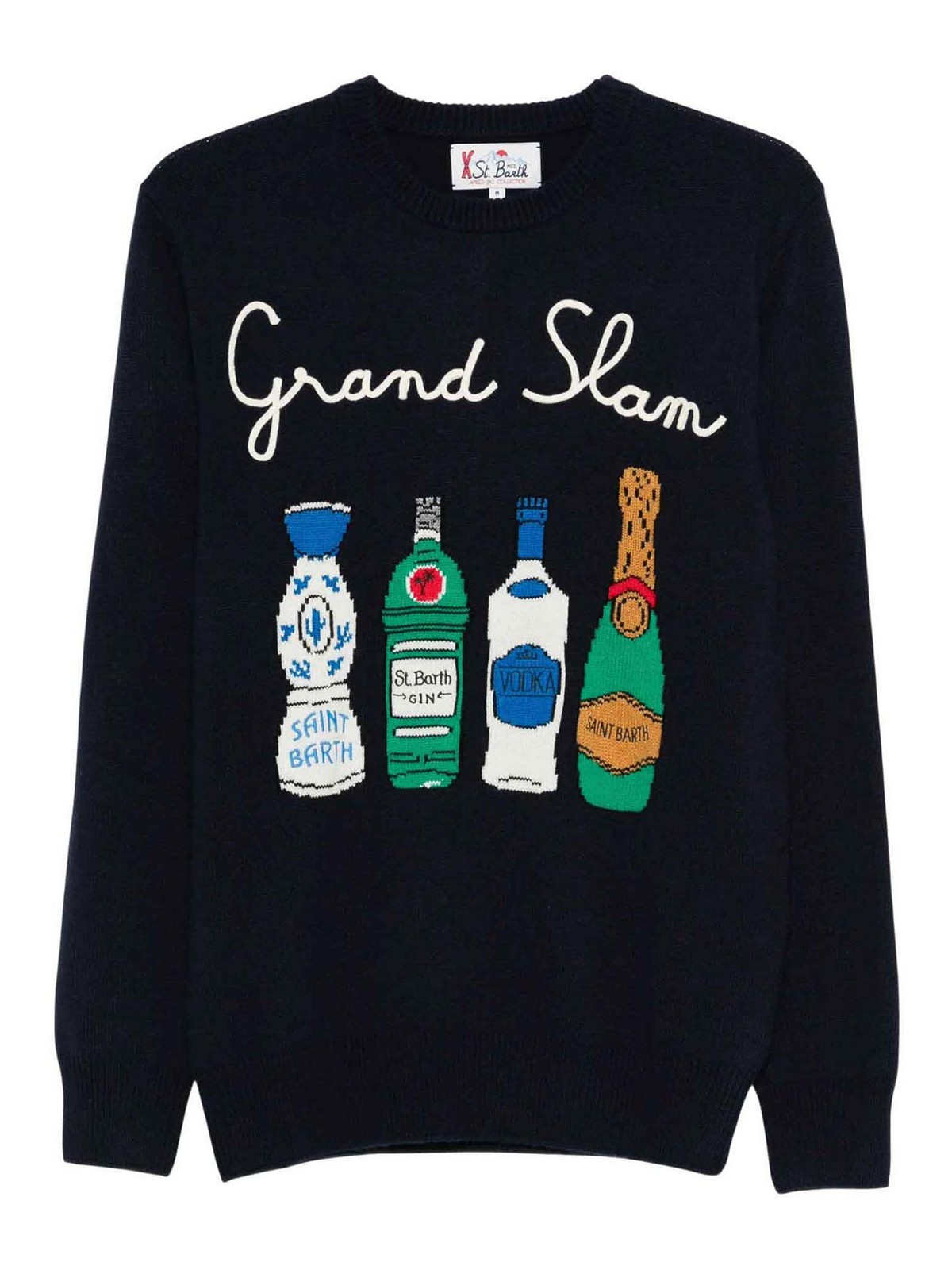 Jersey de cuello redondo Mc Saint Barth Jersey de cuello redondo Grand Slam Jersey de cuello redondo mc saint barth en una preciosa mezcla de y diseñado para ofrecer calidez, suavidad y una comodidad superior. El modelo, caracterizado por el motivo con incrustaciones de Grand Slam, combina un espíritu deportivo y una ironía refinada en un equilibrio perfecto entre la elegancia y el estilo casual típico de la marca, ideal para los looks diarios o momentos de relajación, una prenda que añade personalidad y distinción a la ropa de invierno Grand Slam con incrustaciones delanteras y cuello redondo acanalado logotipo bordado de corte regular en los puños y el dobladillo