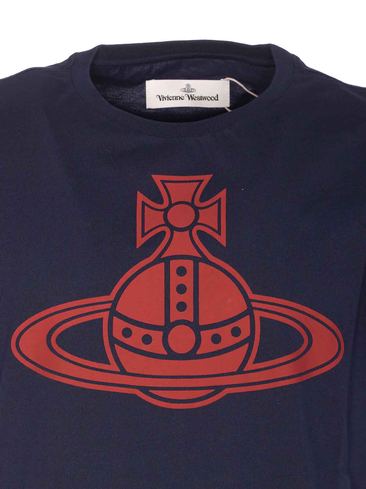 Camiseta azul marino Vivienne Westwood Paris Orb Peru, cuello redondo, logotipo del orbe estampado en la parte delantera