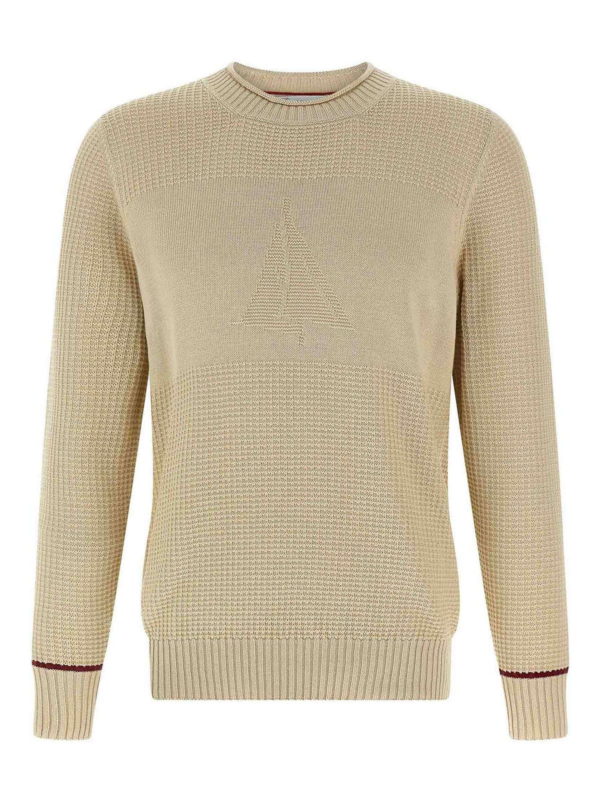 Jersey de algodón con punto gofrado, intarsia en la parte delantera, cuello redondo y mangas largas con puños.