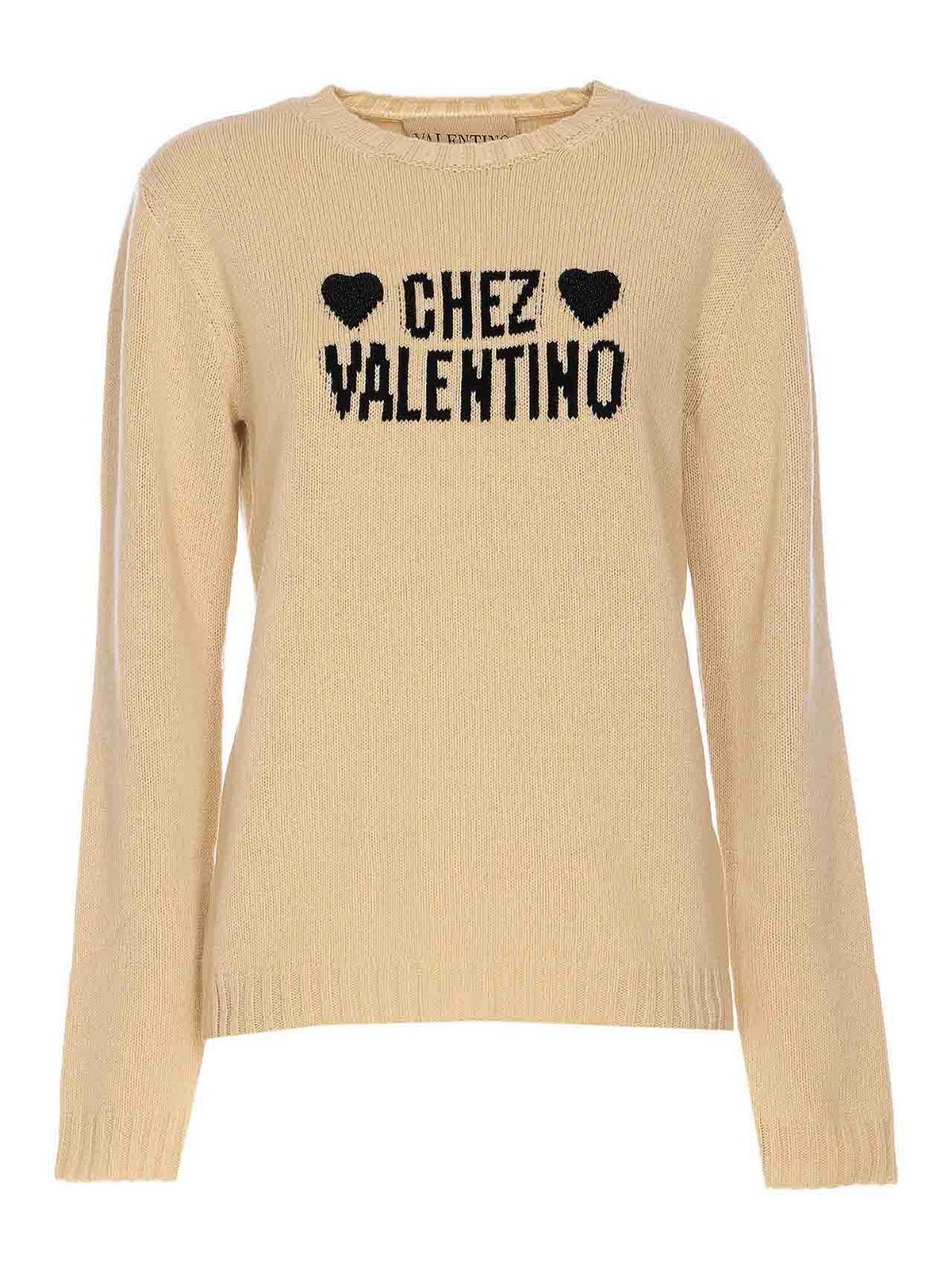 Jersey Chez Valentino de punto con cuello redondo y logotipo de Valentino Garavani, beige