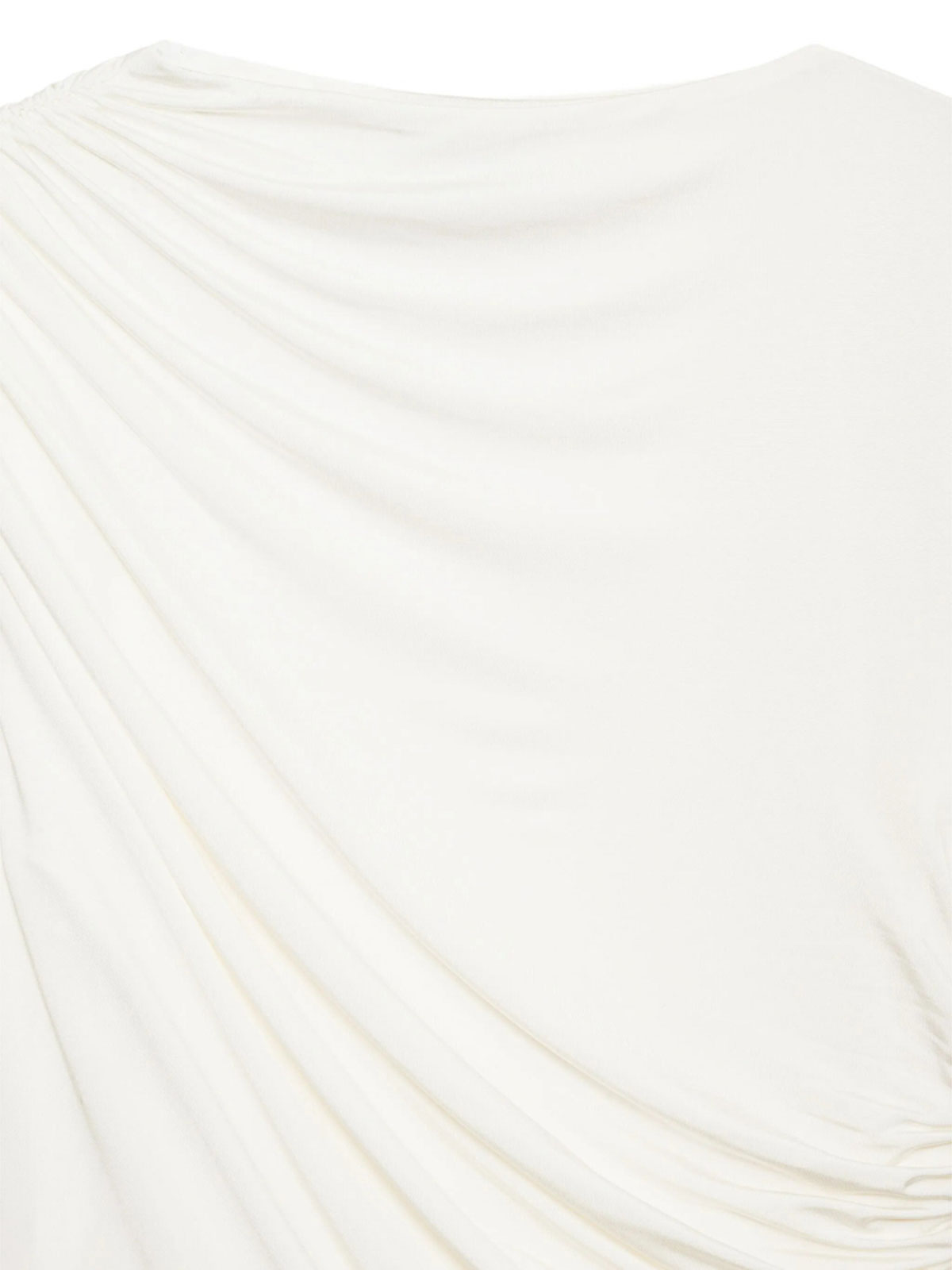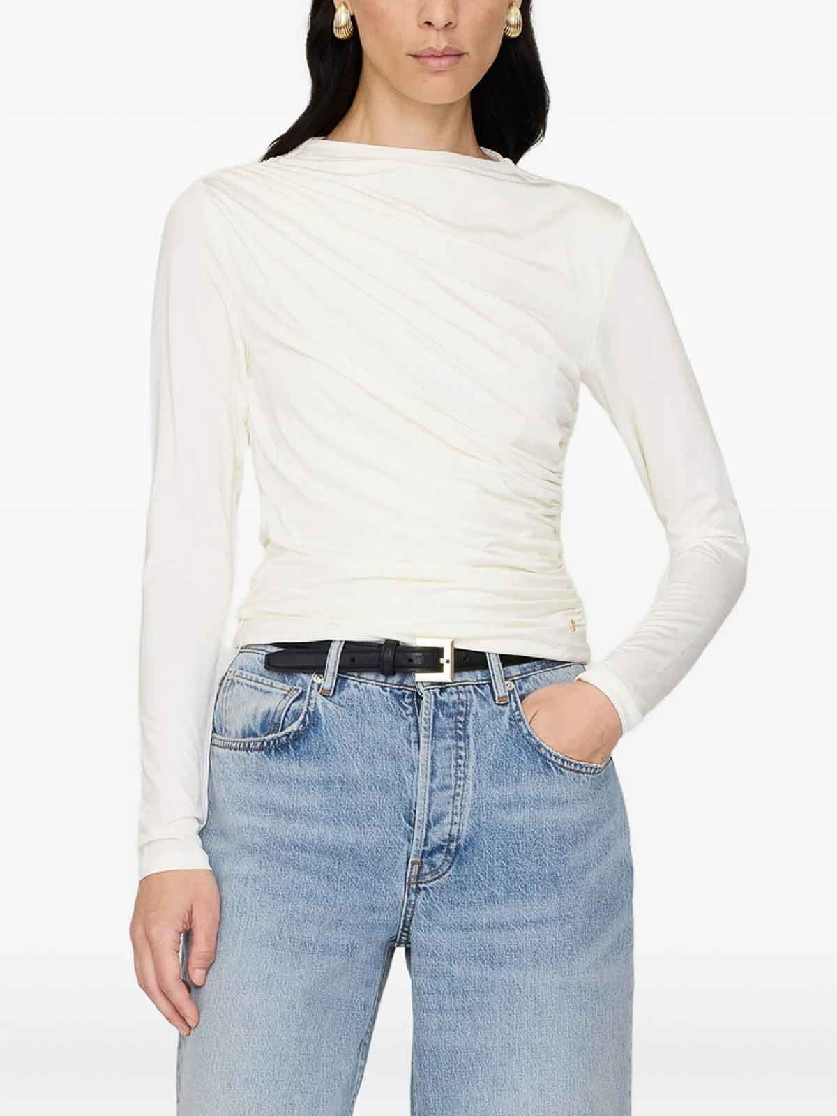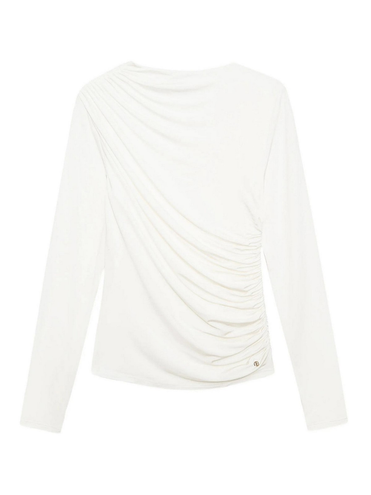 Mangas largas con detalles fruncidos en blanco marfil y dobladillo recto