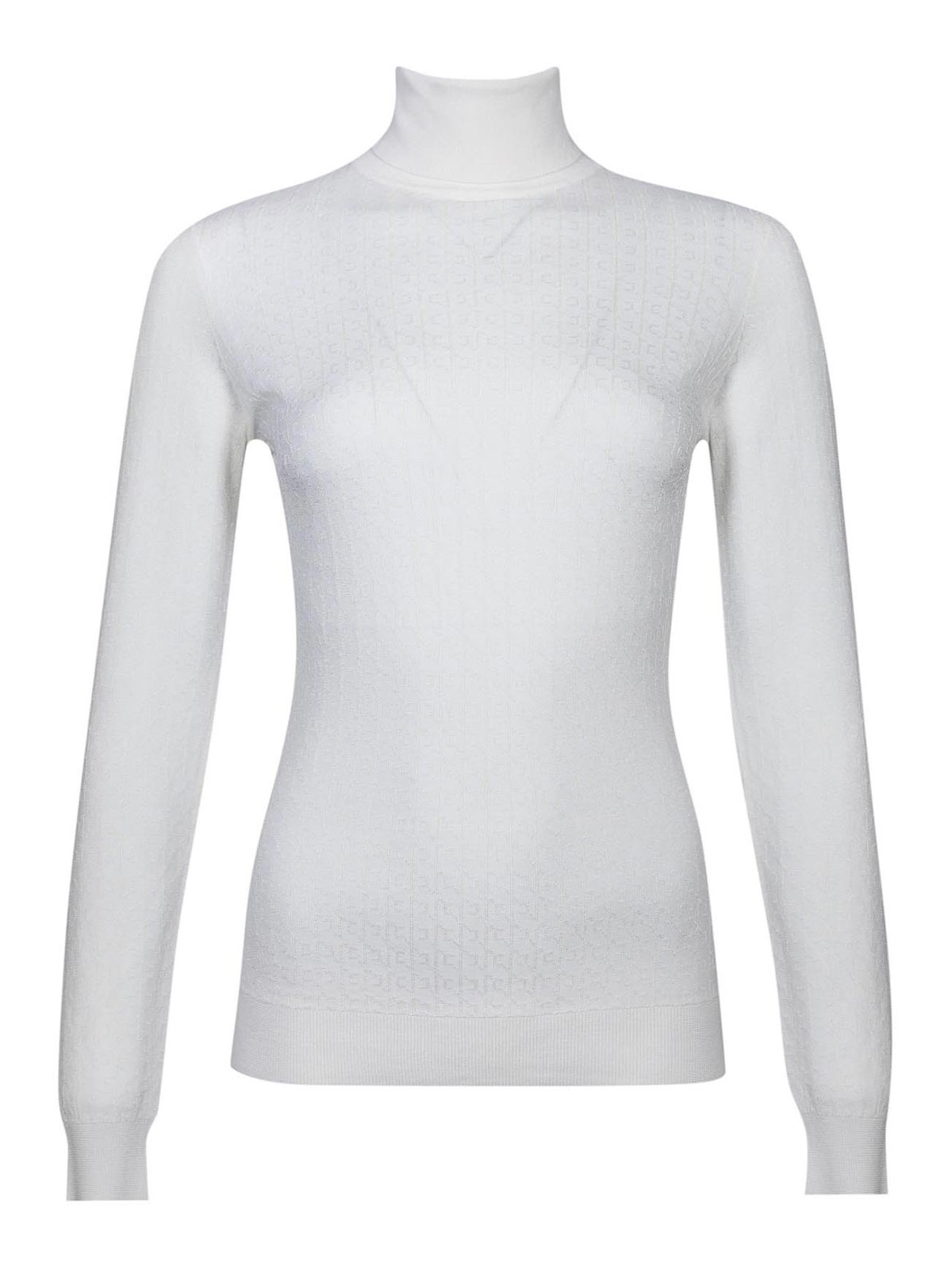 Cuello alto acanalado en lana merino y mezcla, mangas largas, todo sobre jacquard, diseño de logotipo, corte ajustado