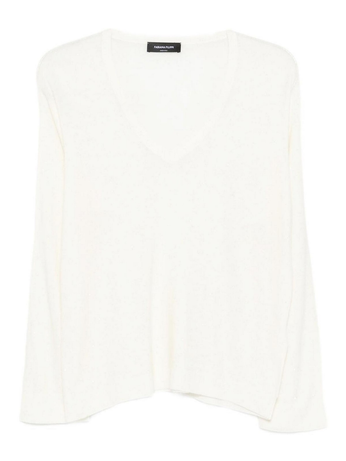 FABIANA FILIPPI: Suéteres con cuello pico - Suéter Cuello Redondo - Blanco