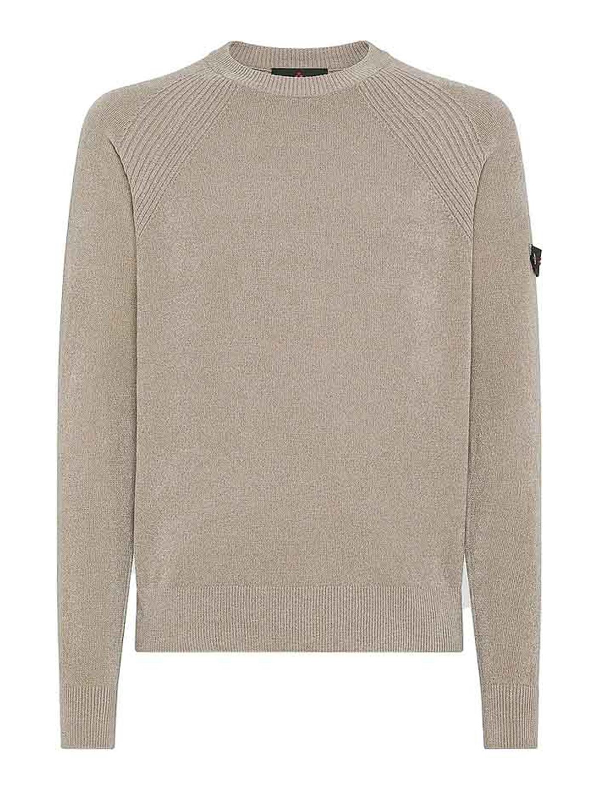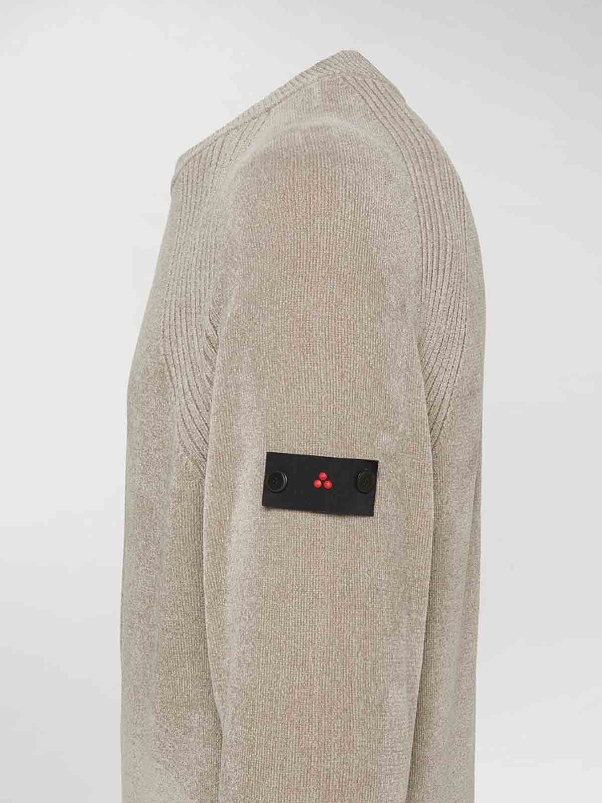 Jersey Peuterey de cuello redondo confeccionado en suave punto de chenilla cepillada, detalles acanalados en el cuello, los puños y la cintura, y el icónico logotipo de la marca aplicado en la manga izquierda con botones.