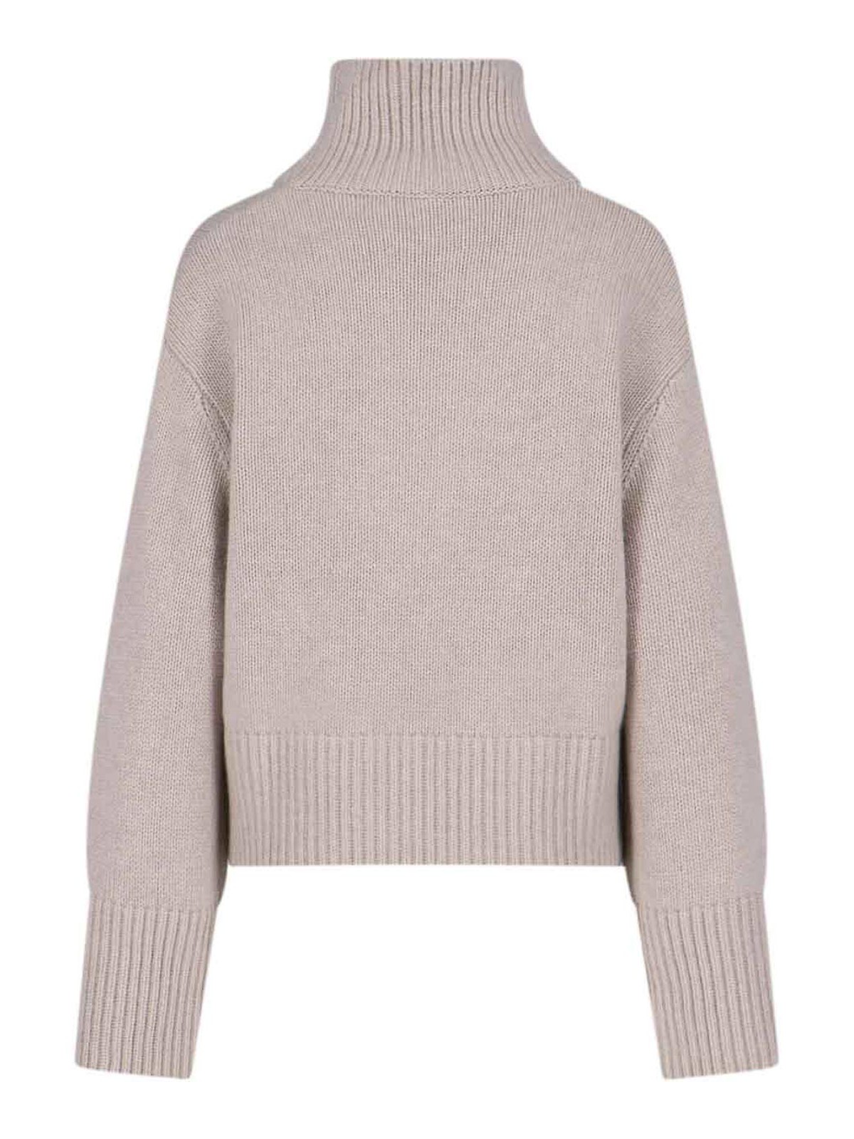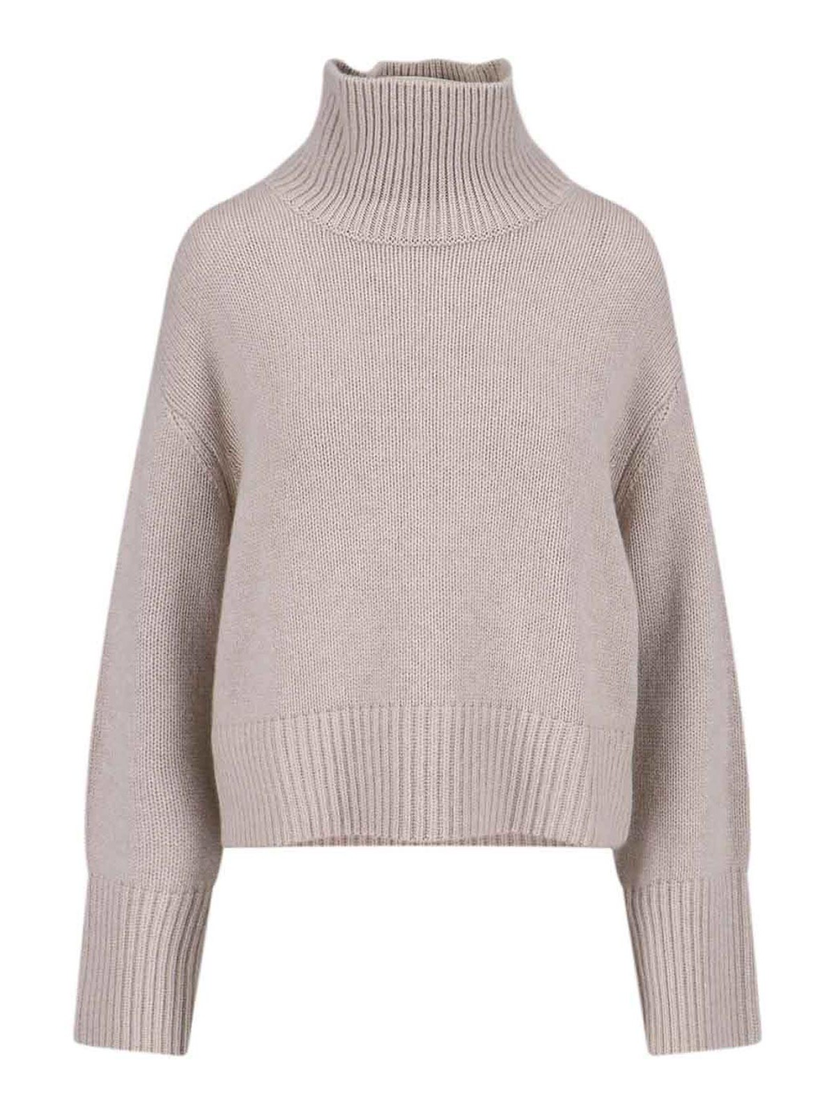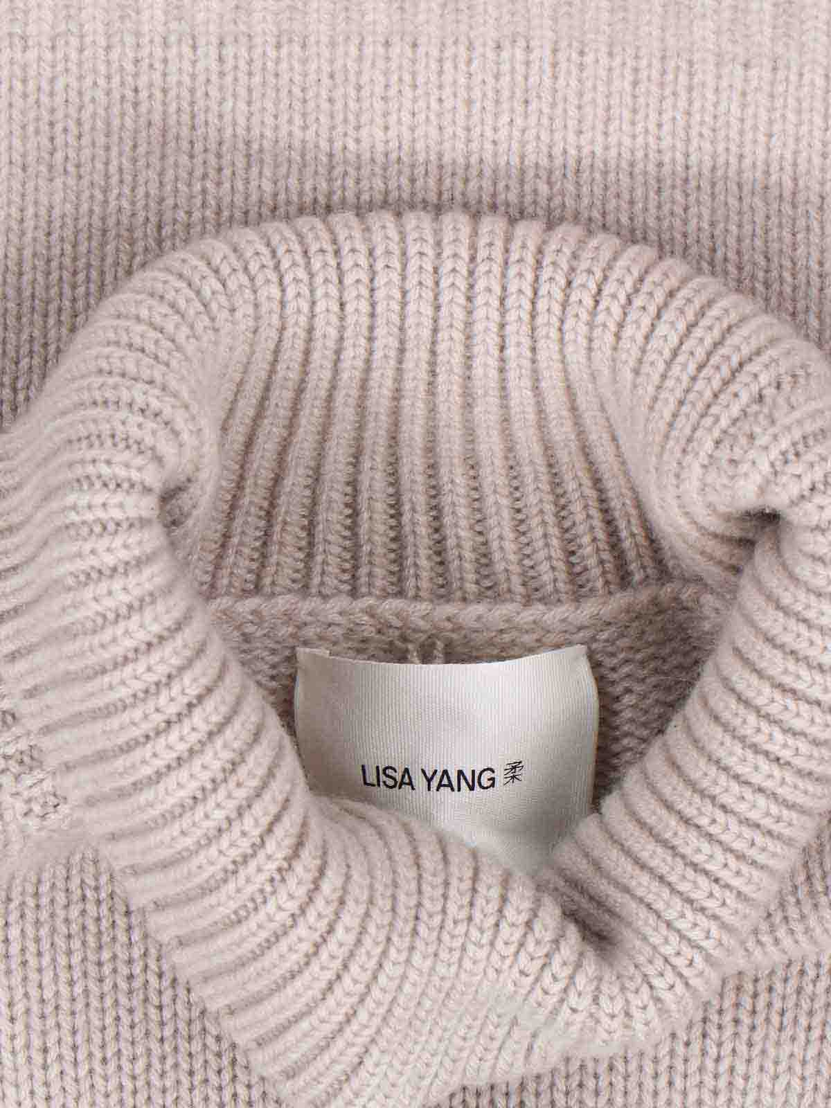 Jersey Lisa Yang Fleur, en cachemir beige, punto, cuello alto, acabados acanalados, hombros caídos, dobladillo recto.