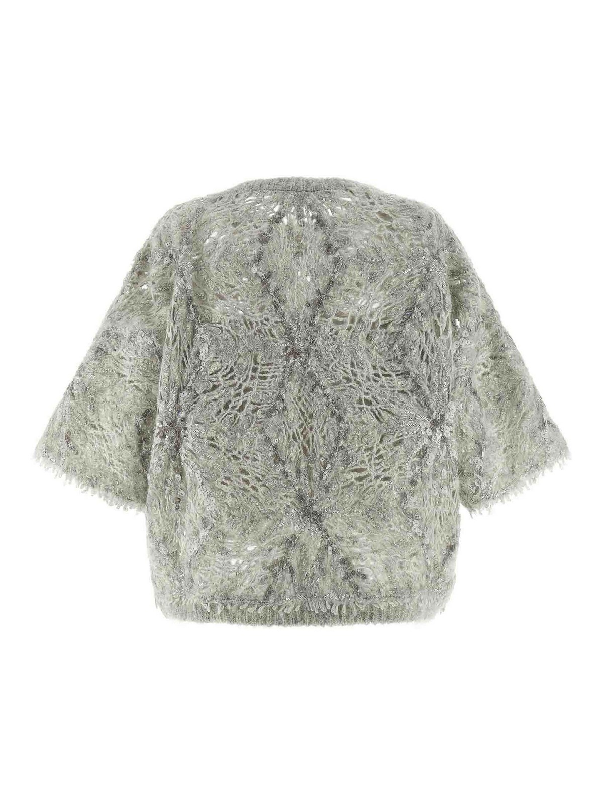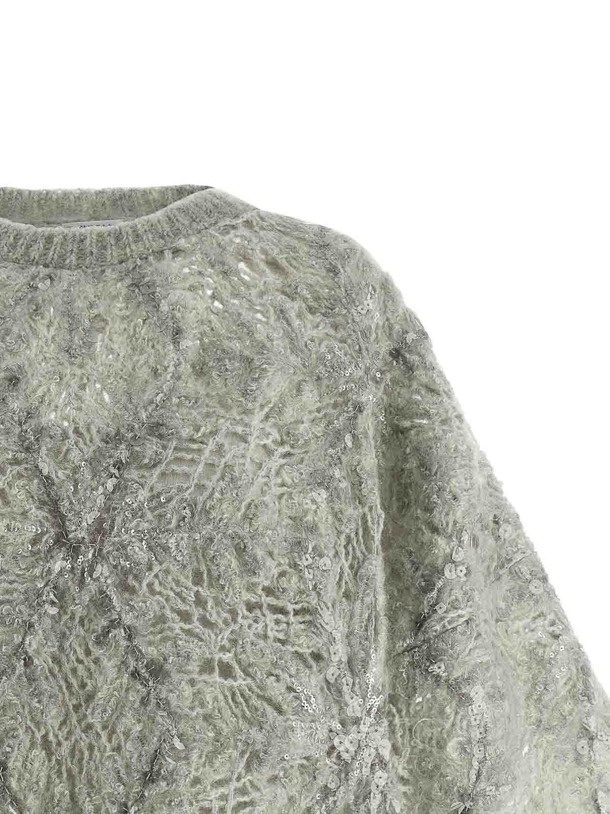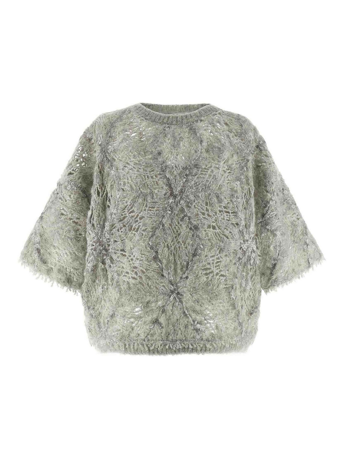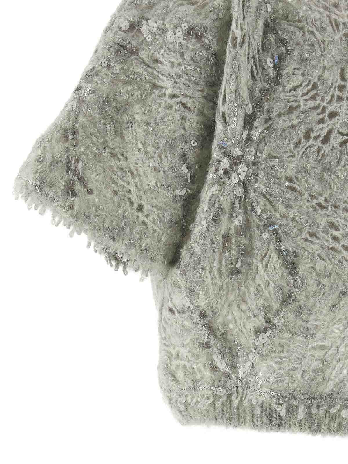 Jersey en mezcla de mohair y lana tejido con tejido ancho con lentejuelas, cuello redondo y mangas cortas.