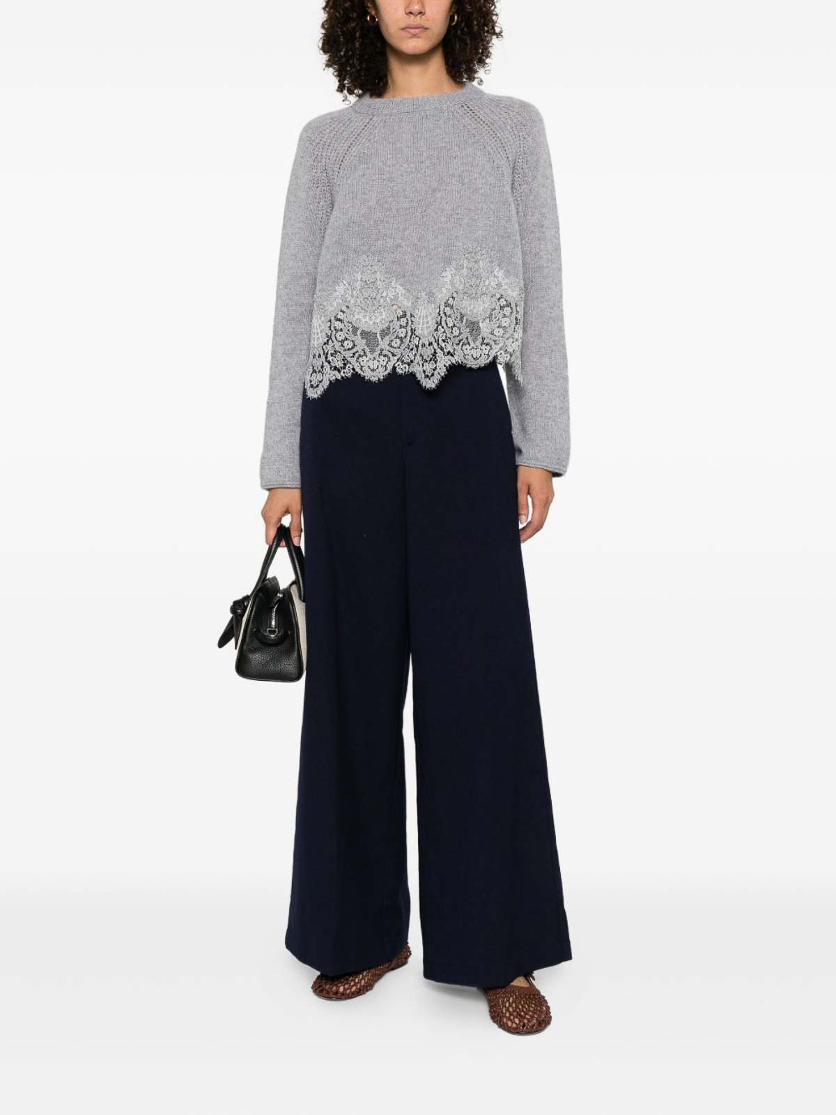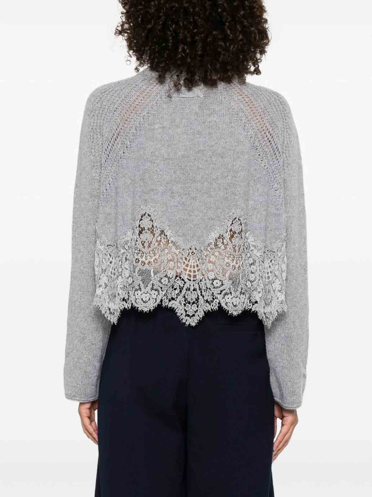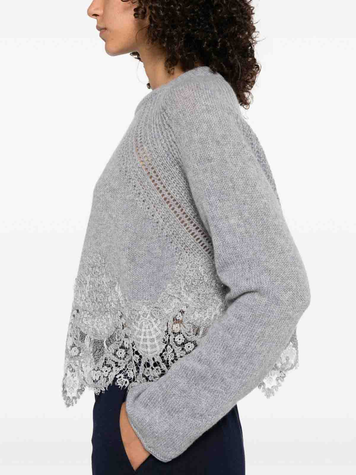 Jersey Ermanno scervino gris con cuello redondo y ribete de encaje