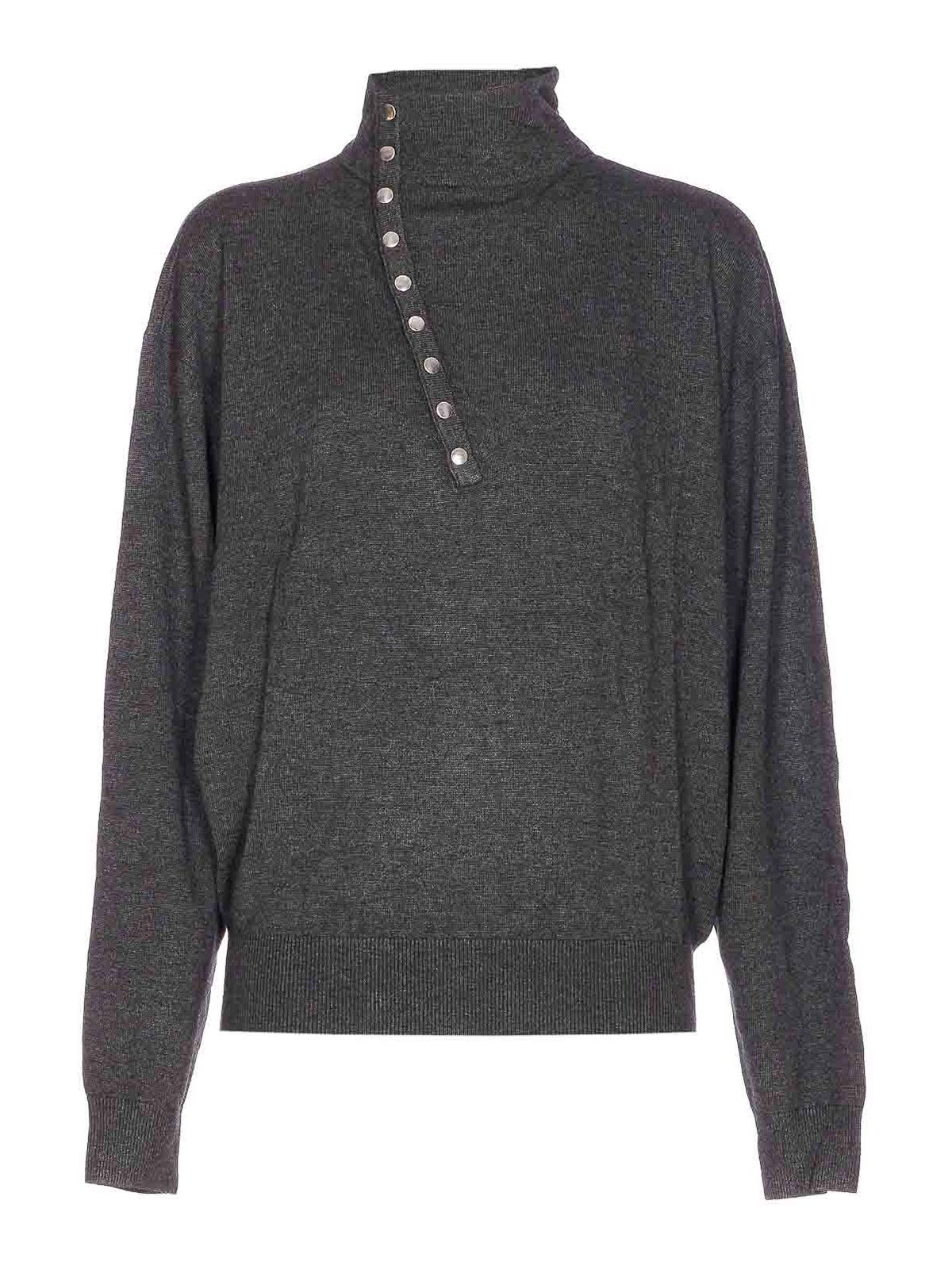 Jersey calsia gris Isabel Marant, cuello alto, manga larga, botones asimétricos Nombre