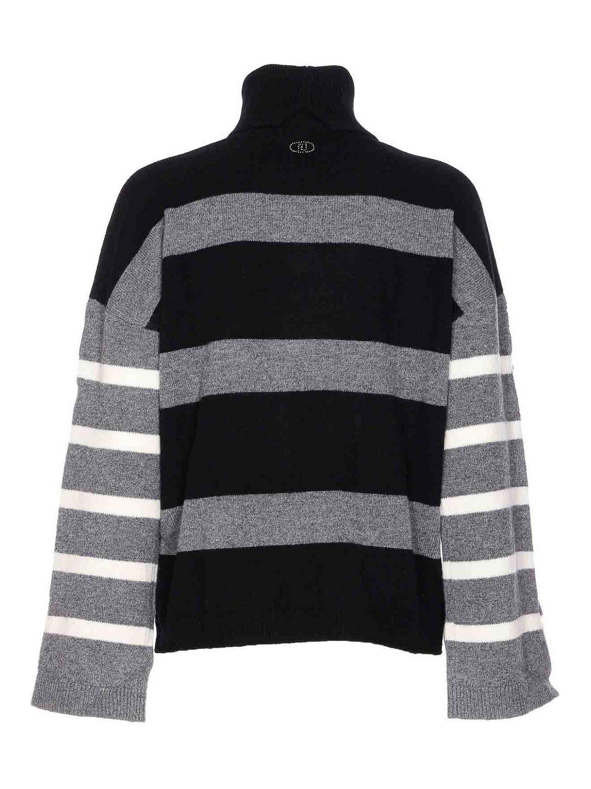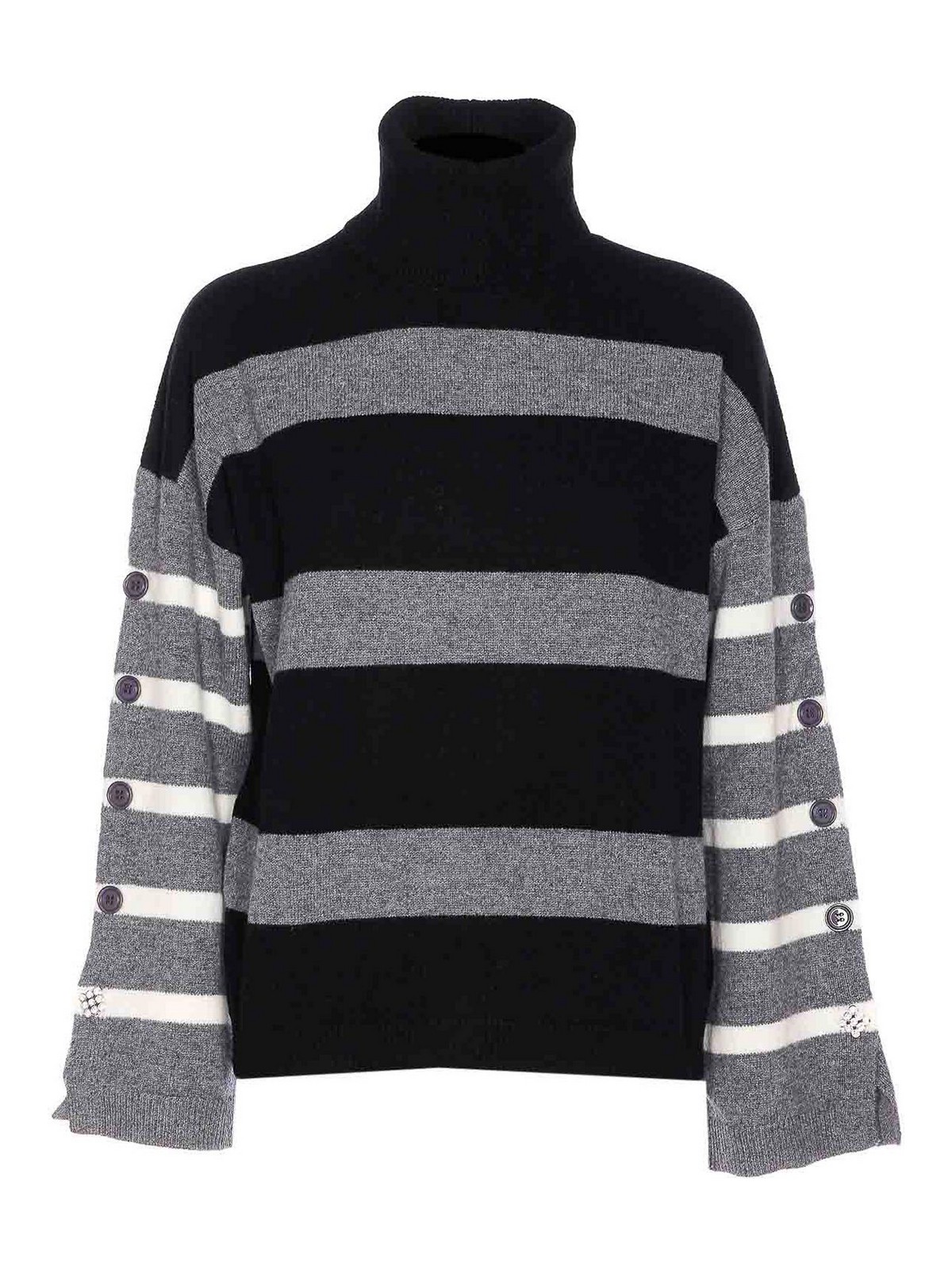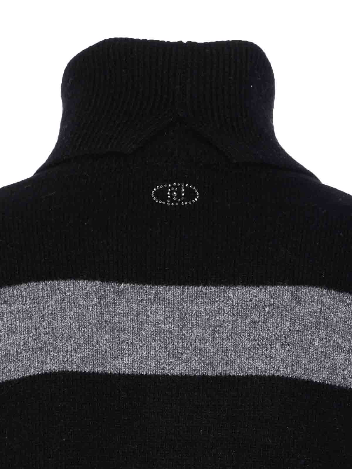 Jersey Liu jo a rayas negras y grises, cintura alta, mangas largas, botones en el hombro