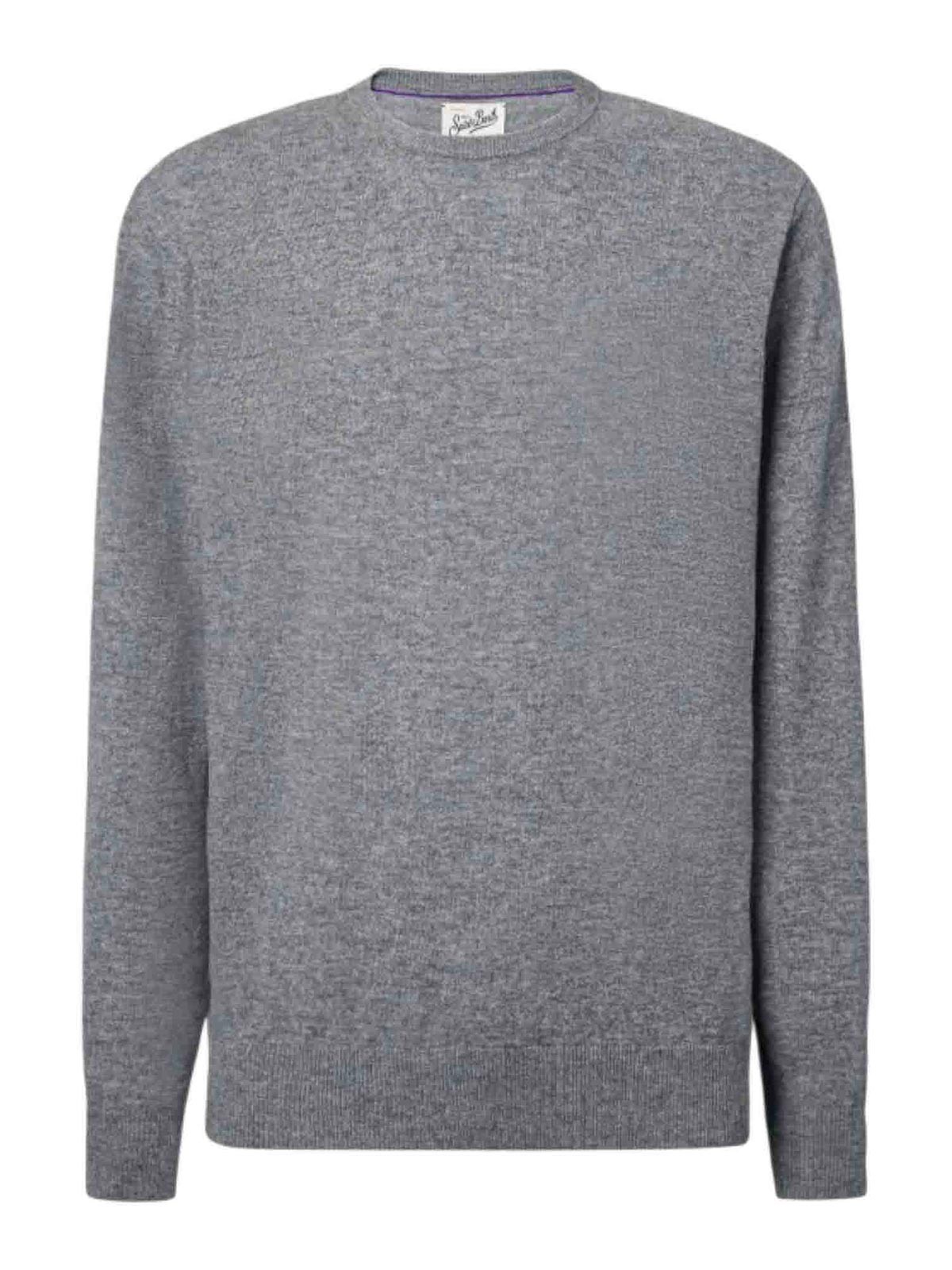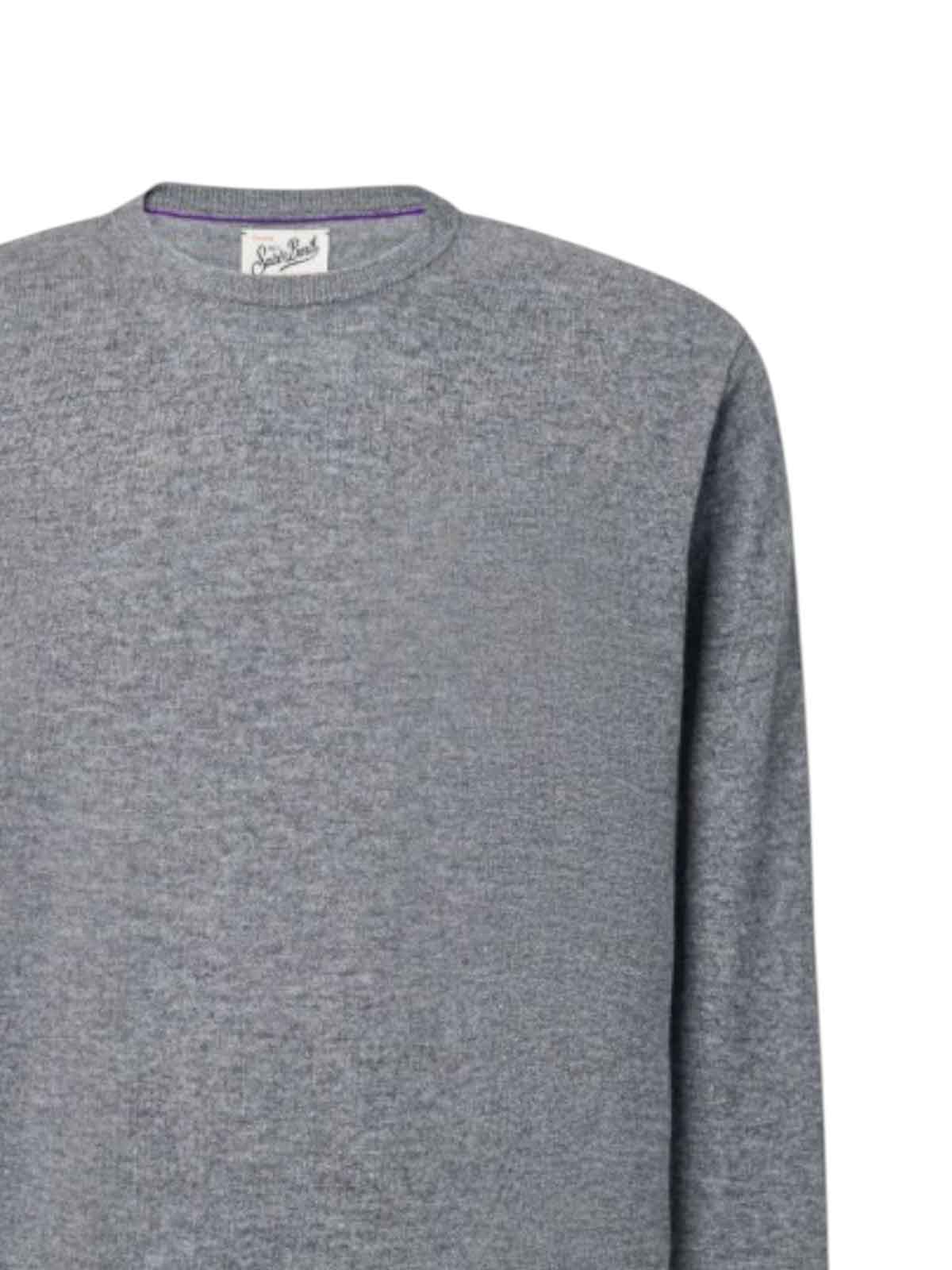 Jersey regent Mc2 saint barth para hombre en lana y cachemir gris melange jersey cuello redondo de mc2 saint barth, confeccionado en lana merino fina e hilo de cachemir. El modelo regent es una prenda esencial para las cuatro estaciones, fina y cómoda, ideal para llevar incluso debajo de chaquetas o blazers. la puntada de punto punto calibre 12 y el bordado st. Barth en la muñeca dan un toque refinado y discreto, perfecto para un look elegante y contemporáneo.