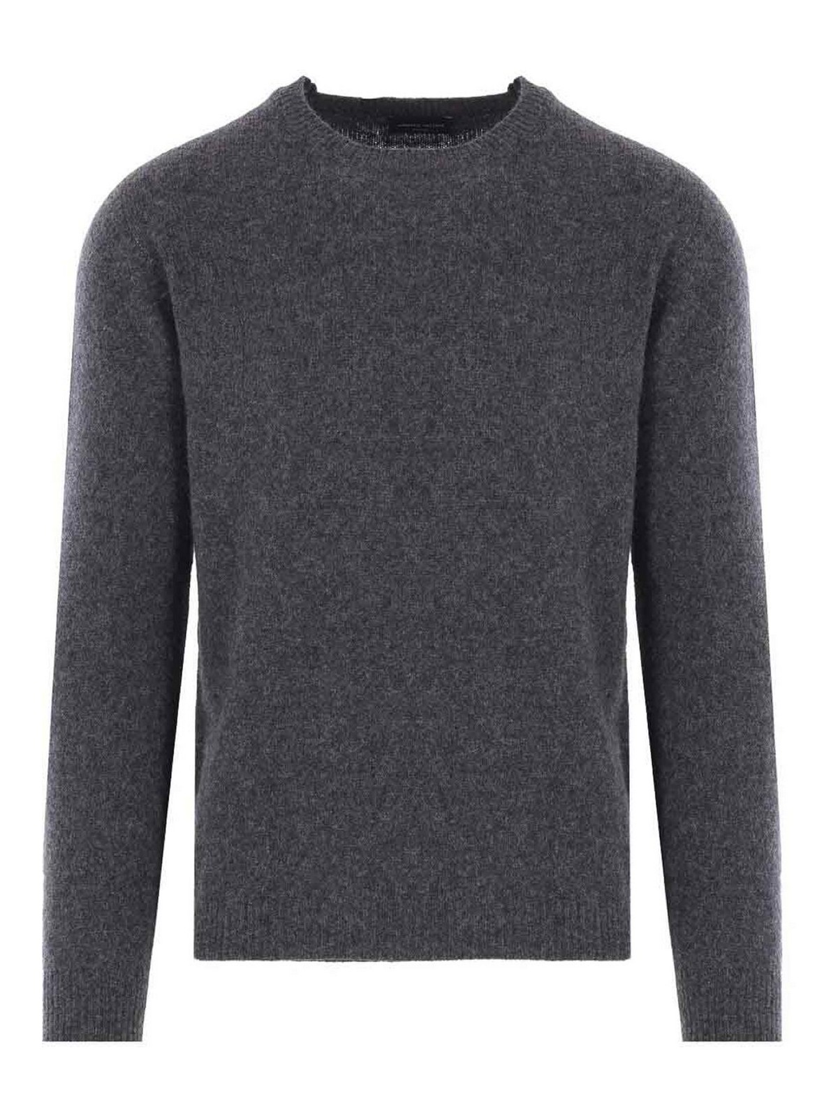Jersey Roberto Collina con cuello redondo en mezcla de lana virgen, color antracita, bordes acanalados.