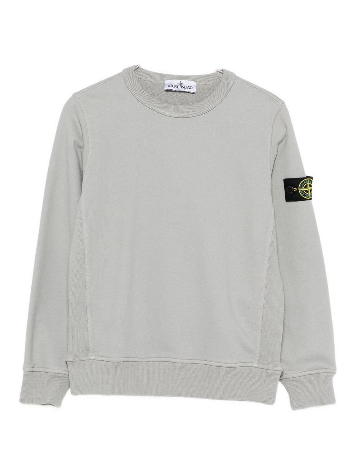 Sudadera de cuello redondo gris Stone Island para niños con logo