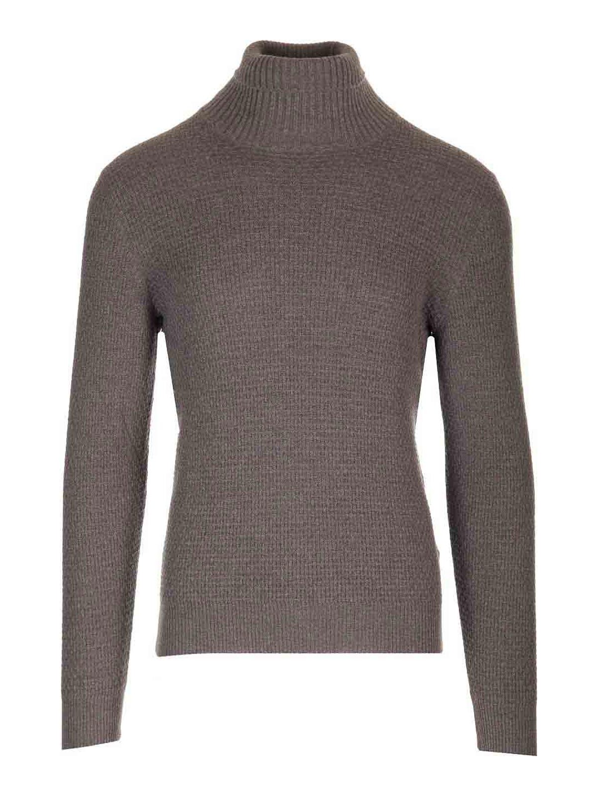 Jersey de cuello alto en gris pardo con motivo tejido de tagliatore con ribetes acanalados.