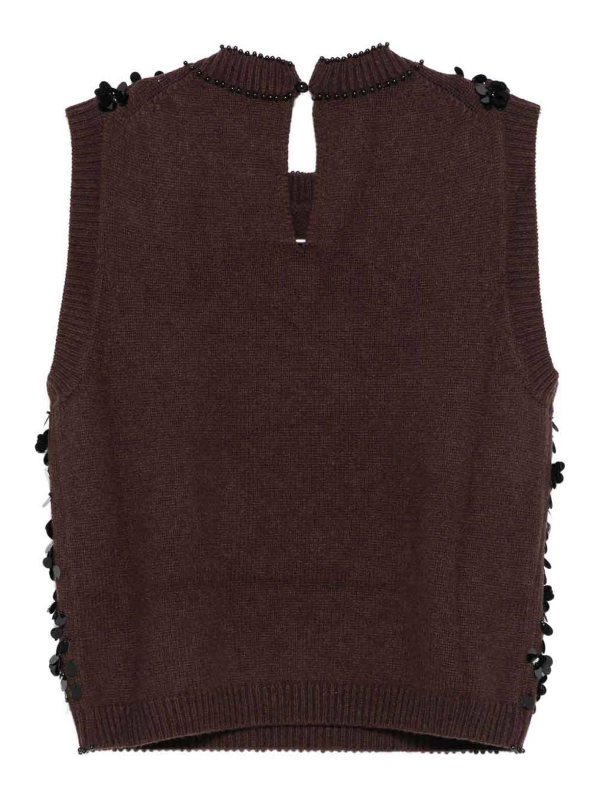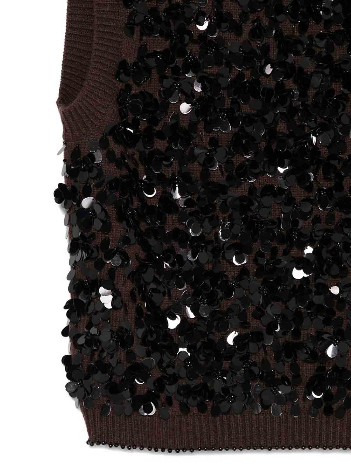 Diseño sin mangas con adorno de lentejuelas marrones, cuello redondo, ribete de cuentas