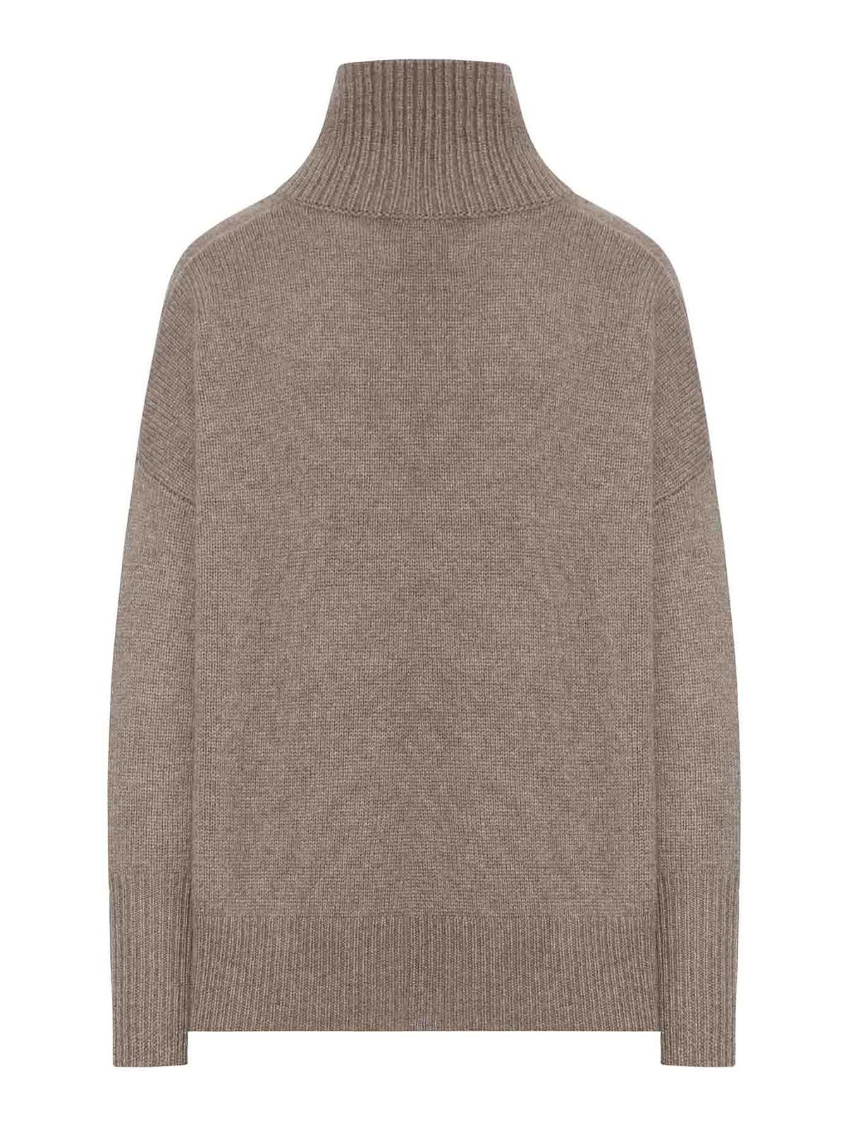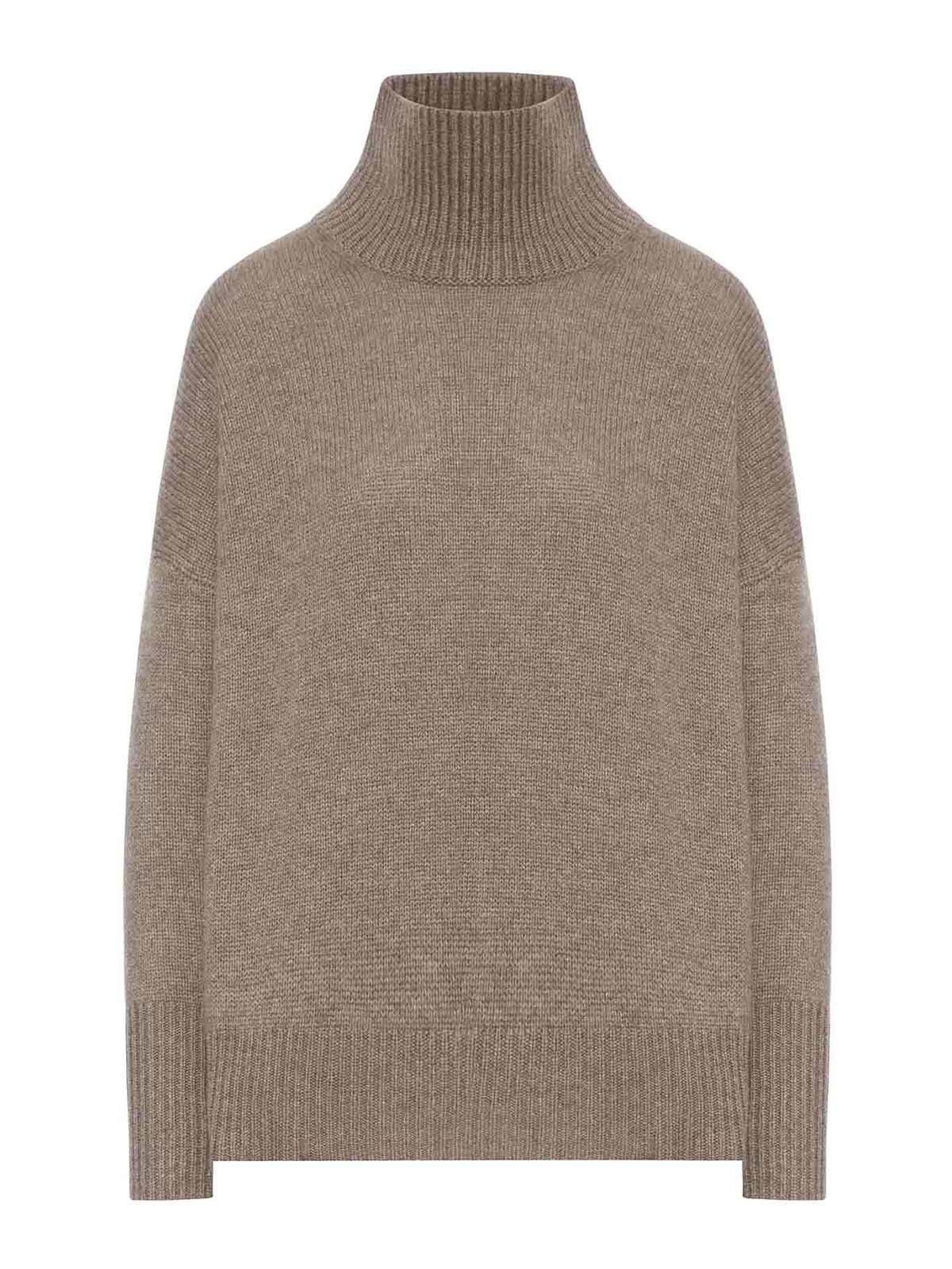 Cuello alto acanalado, sisas caídas, mangas largas, puños acanalados altos, dobladillo acanalado recto, talla grande, color trufa