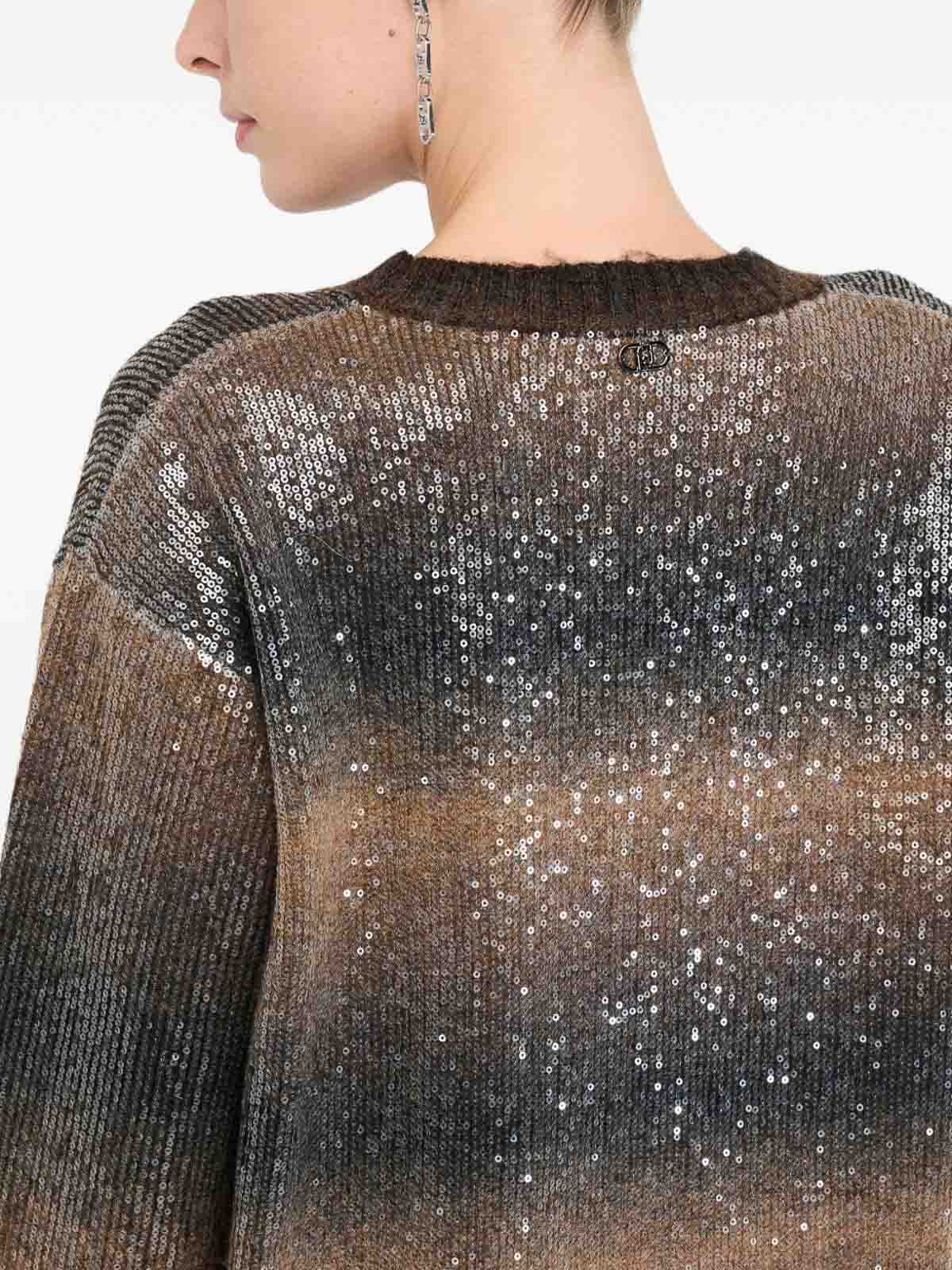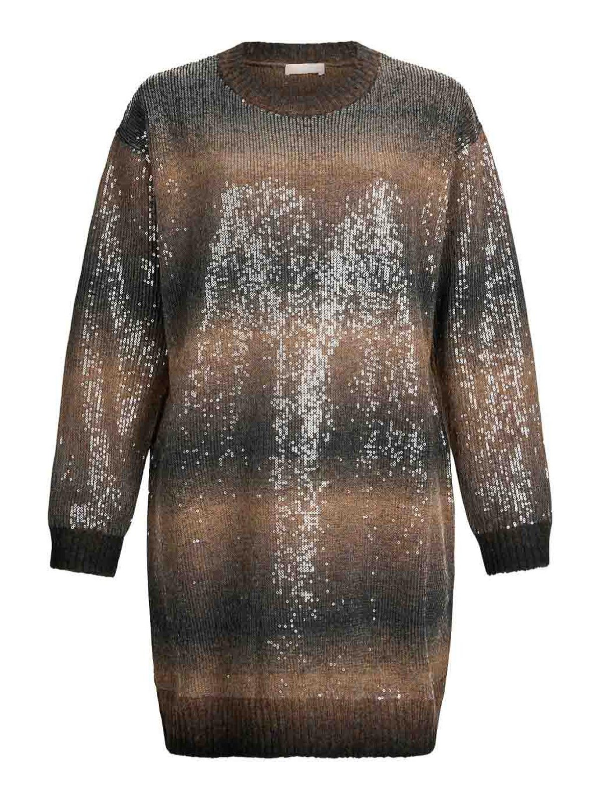 Confección de punto con cuello redondo y adorno de lentejuelas en mezcla marrón