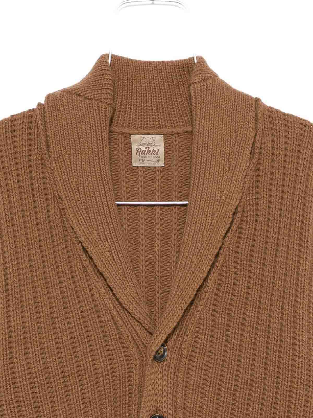 Mangas largas de punto acanalado marrón con cuello tipo chal y cierre de botones